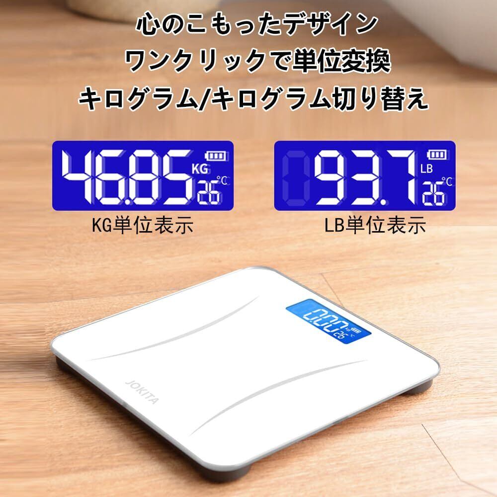 体重計 デジタル 電子スケール ヘルスメーター 乗るだけ 自動電源ON/OFF バックライト付 180kgまで対応 高精度ボディースケール コンパクト 軽量収納 日本語説明書付 (ホワイト)