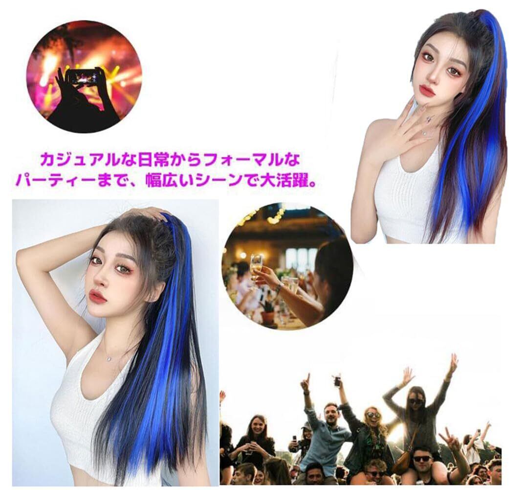 エクステ ポニーテール レディース クリップ式 カラフル ウィッグ ポニーテール ロング ストレート