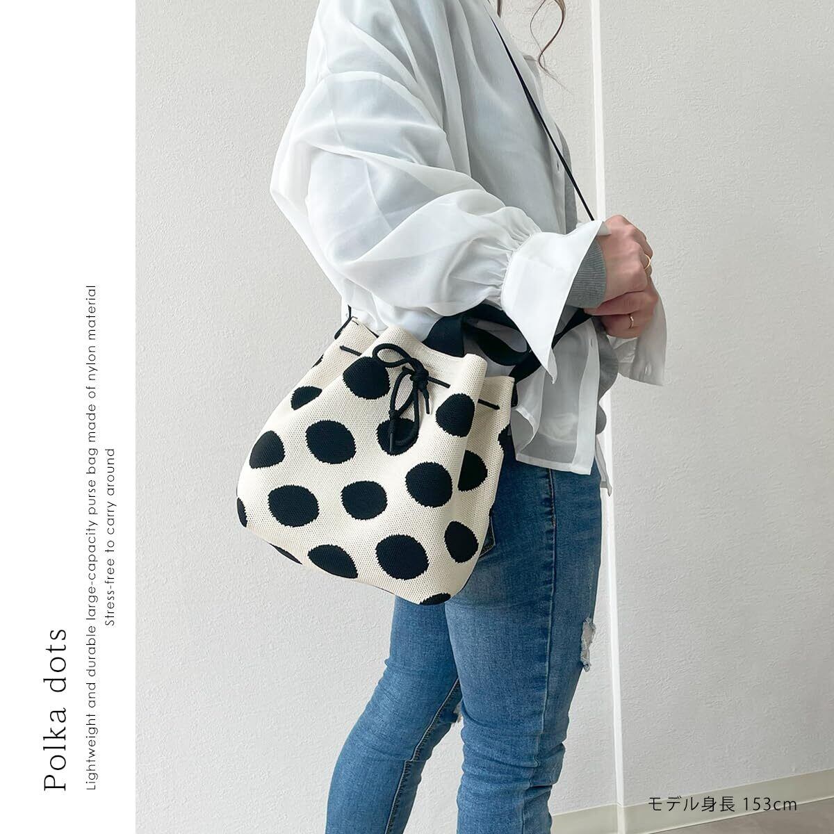 [ジゼル] ショルダーバッグ 巾着バッグ 2way 巾着型 小さめ 自立 軽量 斜め掛け ニットバッグ ミニバッグ サブバッグ レディース