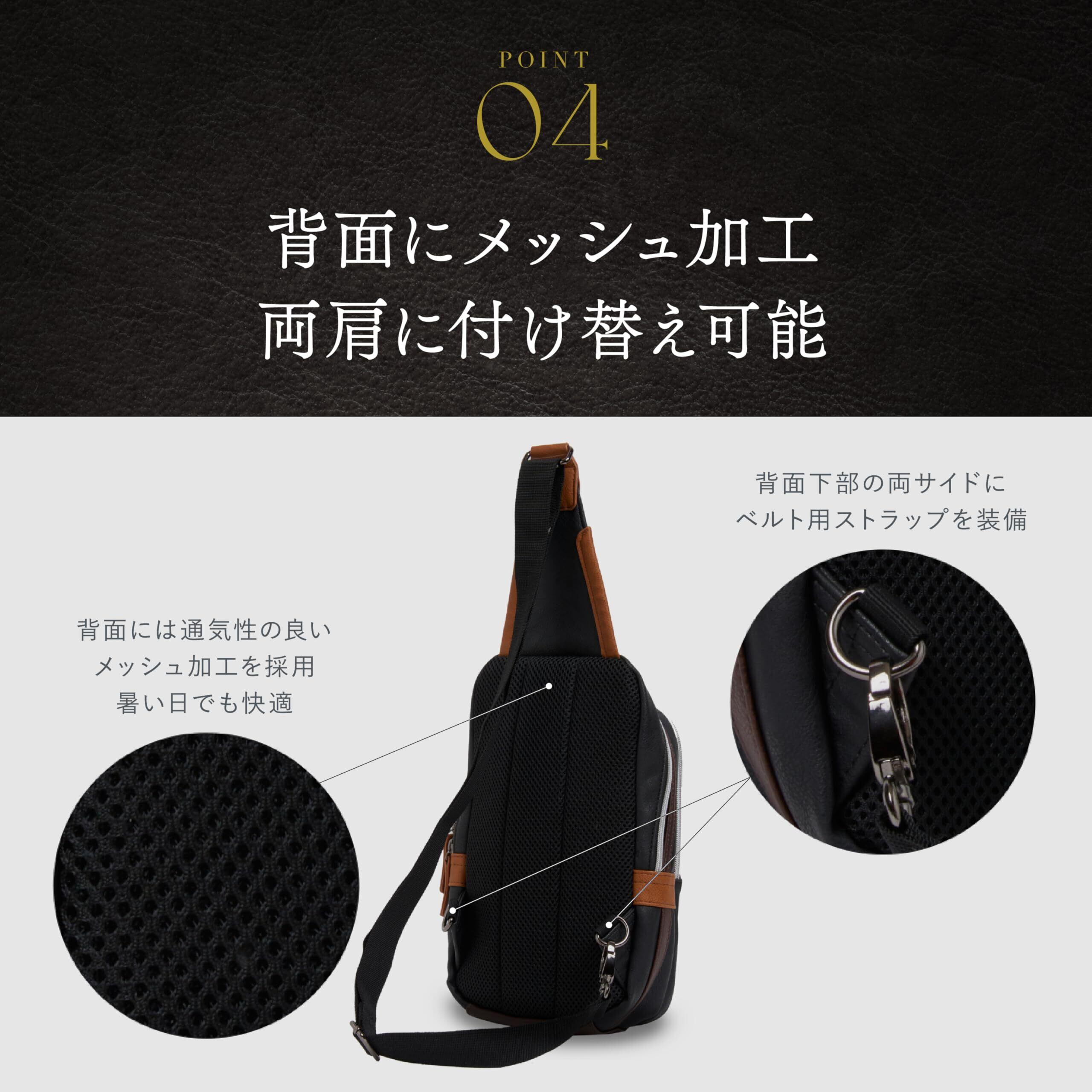 [RONDE] 斜め掛け ボディバッグ【レザーX 背面メッシュ】ショルダーバッグ ボディーバッグ ワンショルダー 大容量 斜めがけバッグ スポーツバッグ メンズ