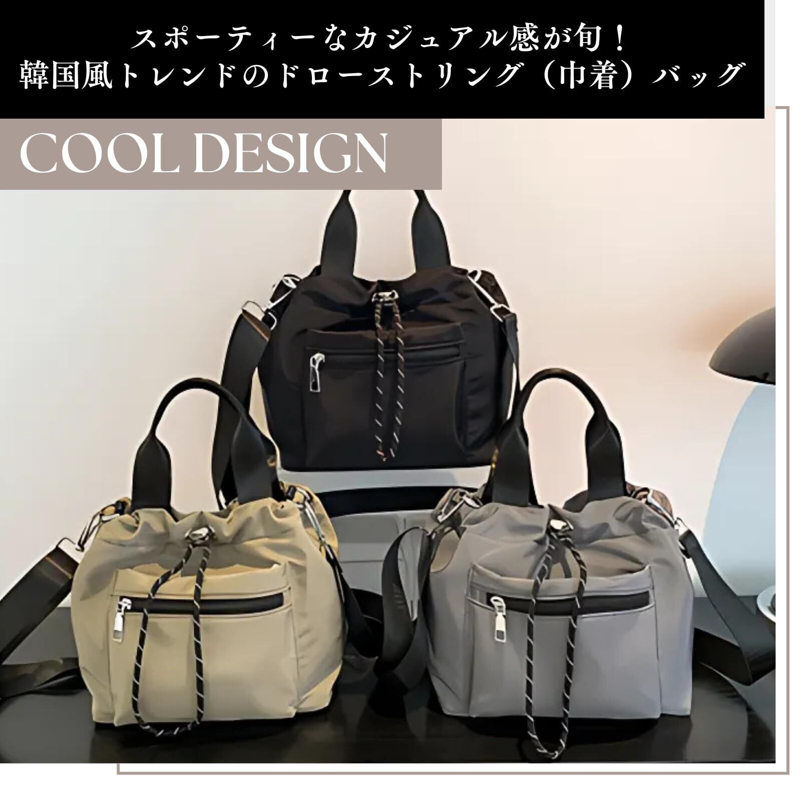 トレンドデザインのドローストリングショルダーバッグです。スポーティーなカジュアル感が旬!お洒落な巾着型で、毎日のお出かけにぴったり!