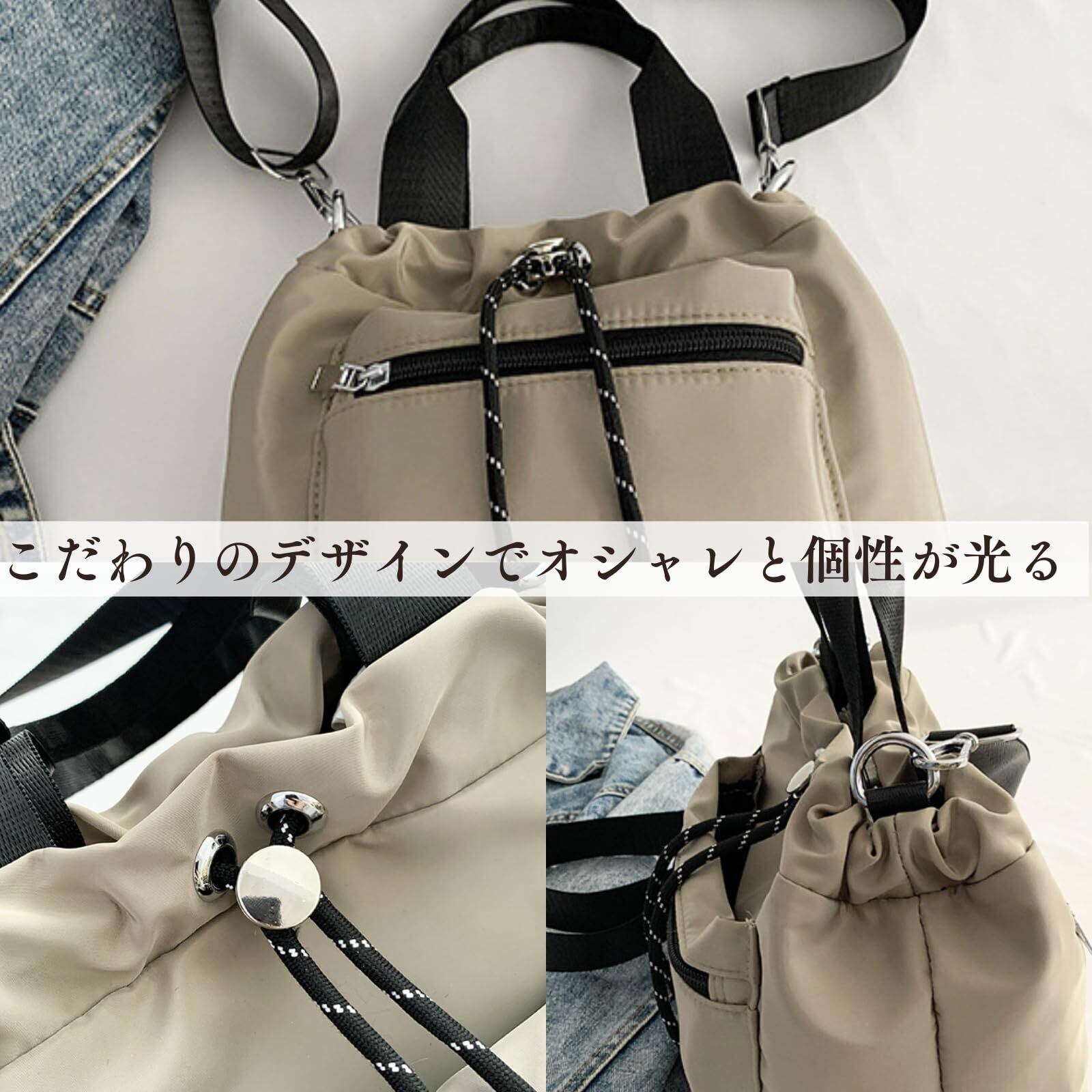 【特価商品】[ハルジオ] 巾着バッグ レディース ショルダーバッグ 2WAY ドローストリングバッグ ショルダー ハンドバッグ ミニバッグ ポシェット ナイロン 肩掛け 斜めがけ 人気 ブラック ベージュ グレー オシャレ バッグ 鞄 かばん (カーキ) | allureshop