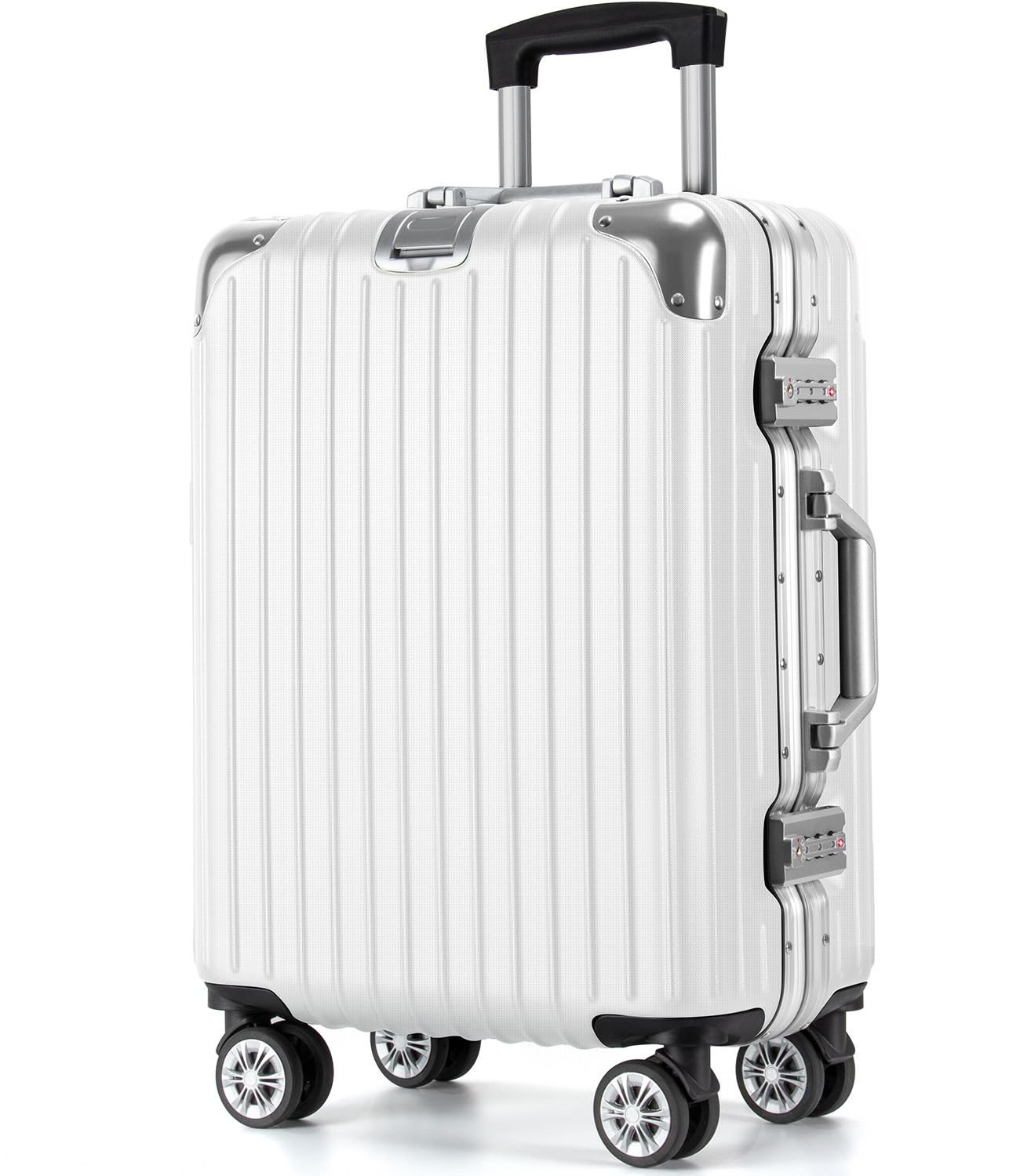 VARNIC スーツケース キャリーケース キャリーバッグ アルミフレーム 大型 静音 ダブルキャスター 耐衝撃 360度回転 TSAダイヤルロック 旅行 出張 (M ホワイト)