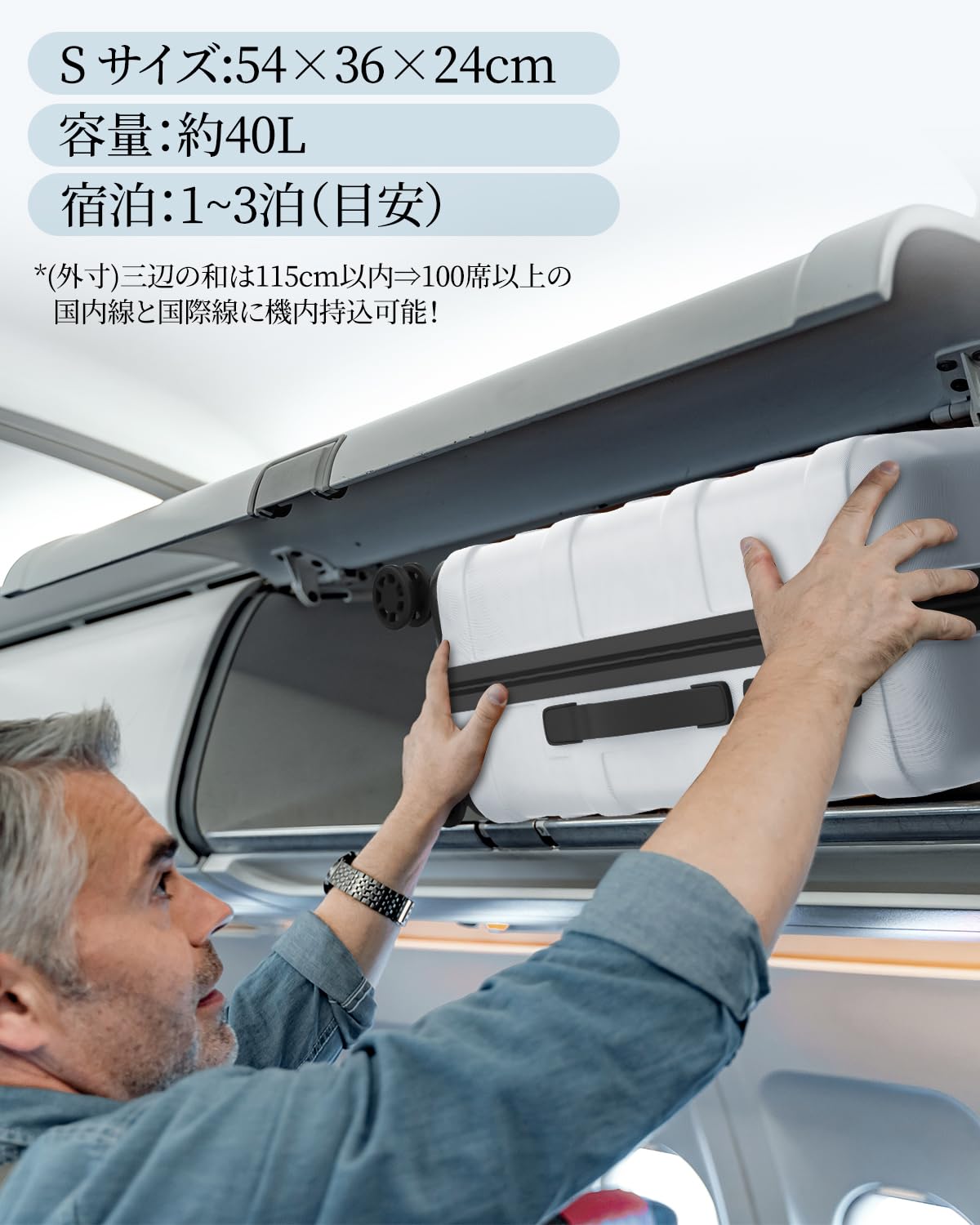 【機内持ち込み可能】 Sサイズ:54×36×24cm、三辺合計:114cm、(外寸)三辺の和は115cm以内⇒100席以上の国内線と国際線に機内持込可能!容量:約40L、重:約4kg、宿泊目安:1~3泊。 ■当店は品質向上のために常に改良しております。そのため一部部品が説明画像と異なる場合もございます。予めご了承くださ。画像と実物のカラーにつきましては、撮影時の光加減やお客様のブラウザによって、実際のイメージと若干異なる場合もございます。