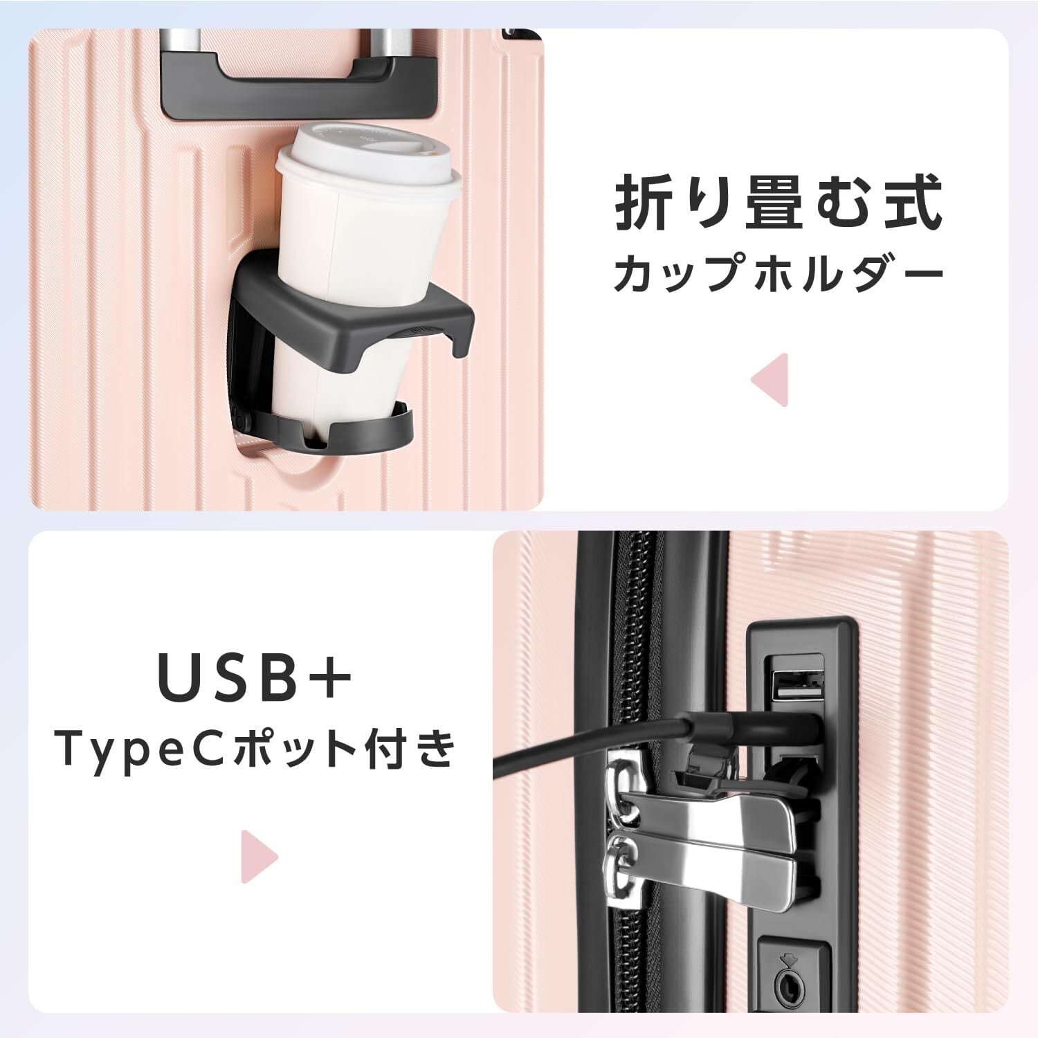 【2022最新】[JOLISTAR] スーツケース キャリーケース キャリーバッグ 機内持込 ABS+PC 耐衝撃 大容量 大型 超軽量 静音 ブレーキ機能 ダブルキャスター Type-C&USBポート カップホルダー 隠しフック 360度回転 ストッパー付き ファスナータイプ スマホスタンド おしゃれ 旅行 ビジネス 出張 修学 泊まる 入院 | allureshop