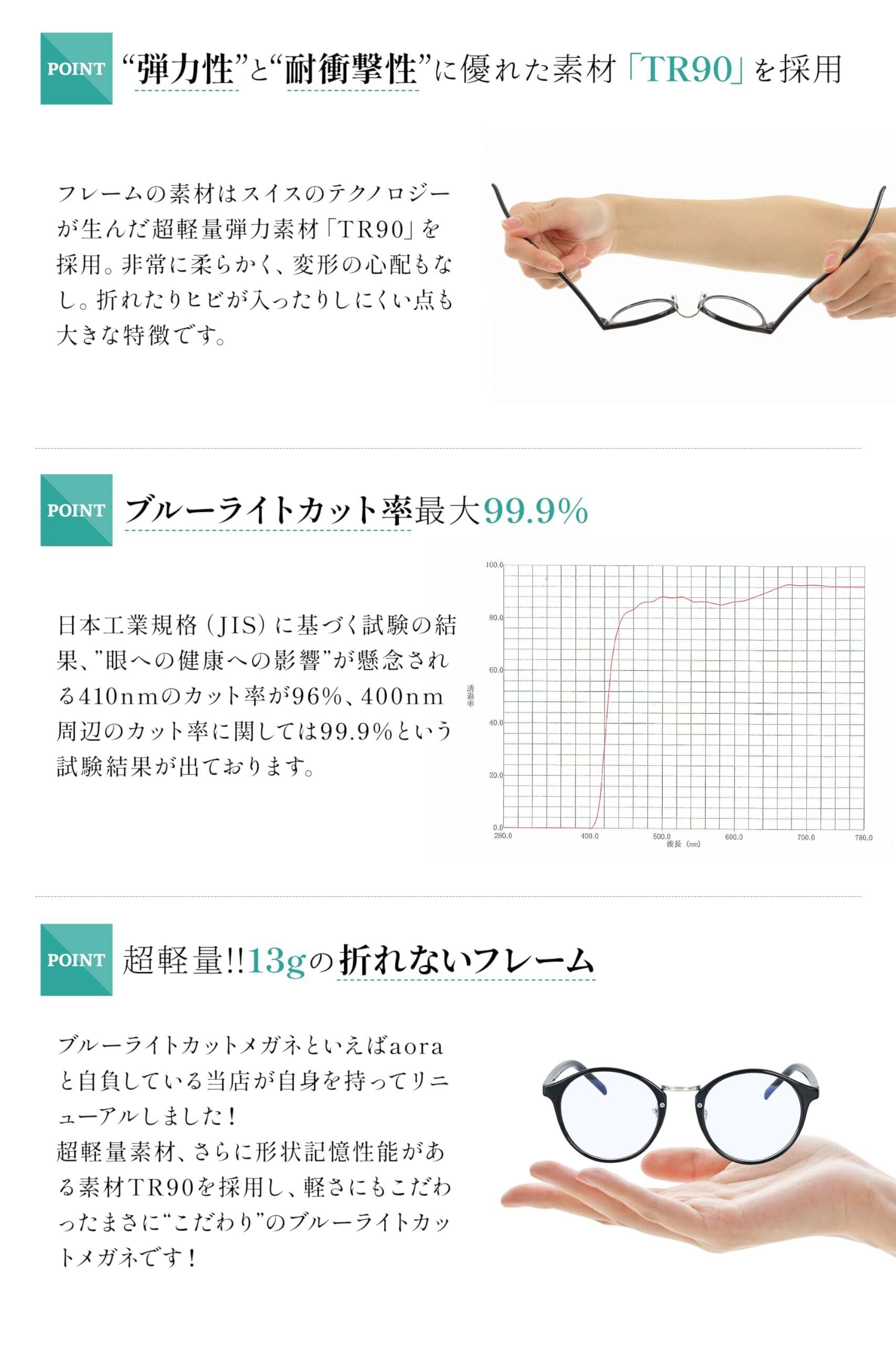 【驚異のブルーライトカット率98%、UVカット率は92%】日本工業規格(JIS)に基づく試験結果では”眼の健康への影響”が懸念される410nmのカット率が約98%という数字を達成!UVカット率(紫外線)も平均カット率約92%!