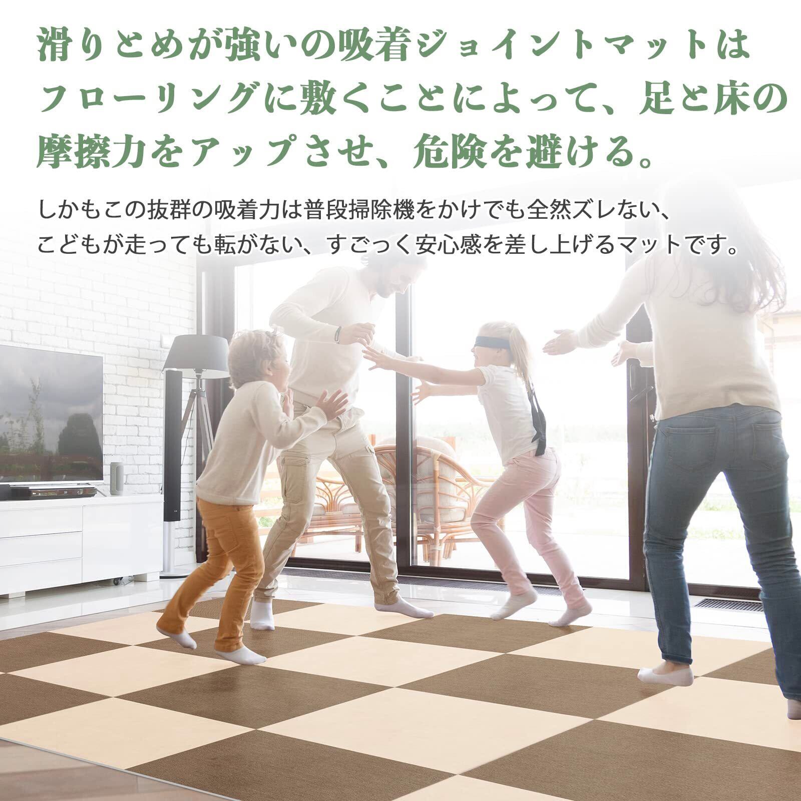 2、【家の守り神、滑りとめマット】おうちのご老人や赤ちゃん、それに老いペットちゃんに対しては、普段の足滑りは大きなリスクであり、危険なことです。滑りとめが強いの吸着ジョイントマットは役に立つ、フローリングに敷くことで、足と床の摩擦力をアップさせ、危険を避ける。しかもこの抜群の吸着力は普段掃除機をかけでも全然ズレない、こどもが走っても転がない、すごっく安心感を差し上げるマットです。
