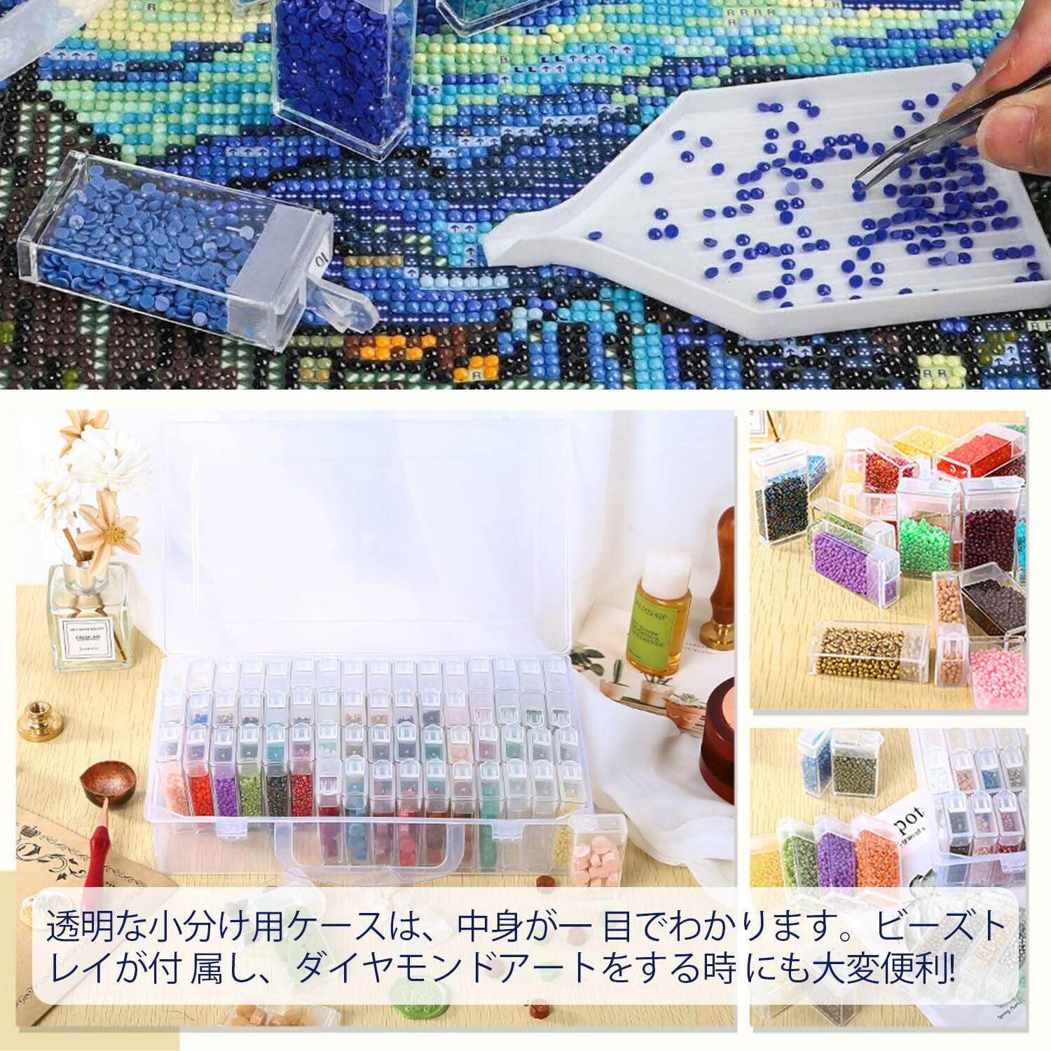 ビーズケース 小物ケース クリアケース 64分割 独立型 ビーズ入れ ダイヤモンドアートツール ネイルケース パーツ 小物 雑貨入れ 小分けケース ビーズコンパクト 収納 (シール、ビーズトレイが付き)