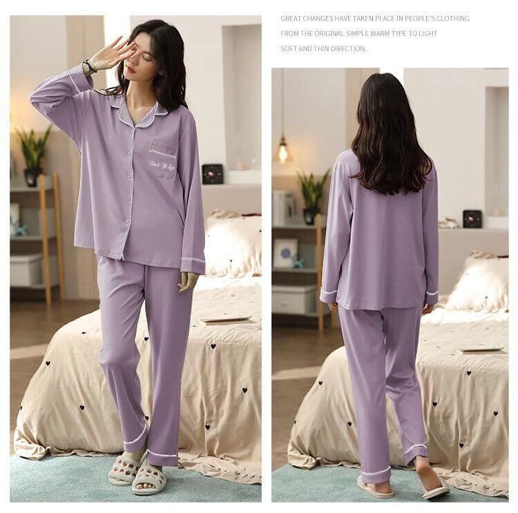 【2022最新】[ヒルトップクラウド] パジャマ レディース 長袖 綿100% ルームウェア レディース 上下セット 厚手 前開き 部屋着 吸汗通気 肌に優しい 暖かい 春秋冬用 | allureshop