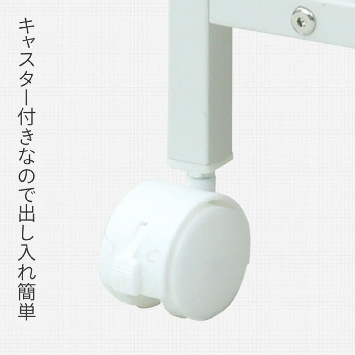 【キャスター付きで靴も収納できる】キャスターが付いているので出し入れカンタン。使いたい時や掃除の時などサッと出し入れできます。また、下棚の下には靴を収納することができ、サンダル等への履き替えにも便利です。