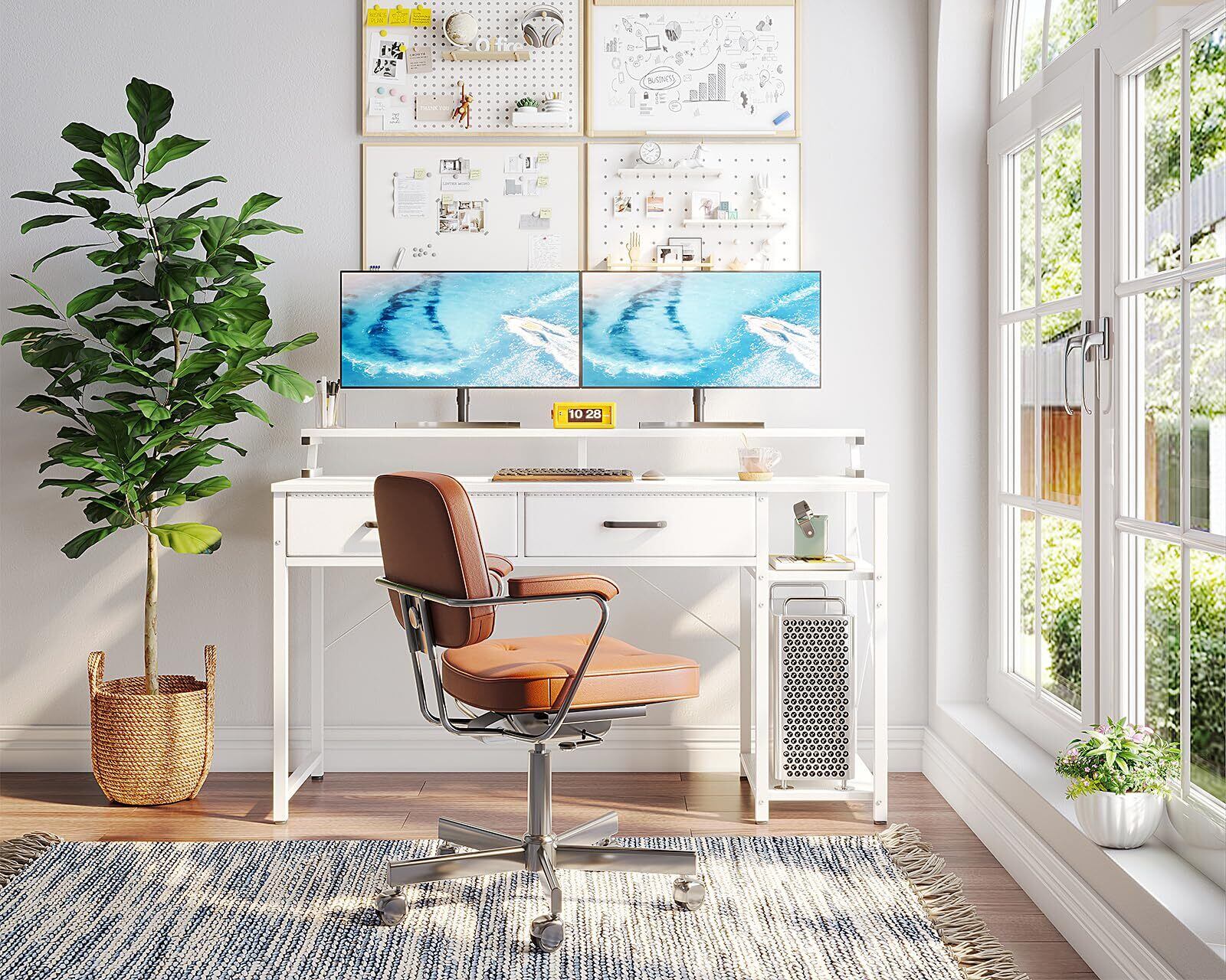【数量限定】ODK ゲーミングデスク ラック&引き出し2杯付き 幅120cm パソコンデスク 机 pcデスク モニター台付き ワークデスク オフィスデスク おしゃれ 省スペース 一人暮らし 在宅勤務 左右入れ替え対応 ホワイト | allureshop