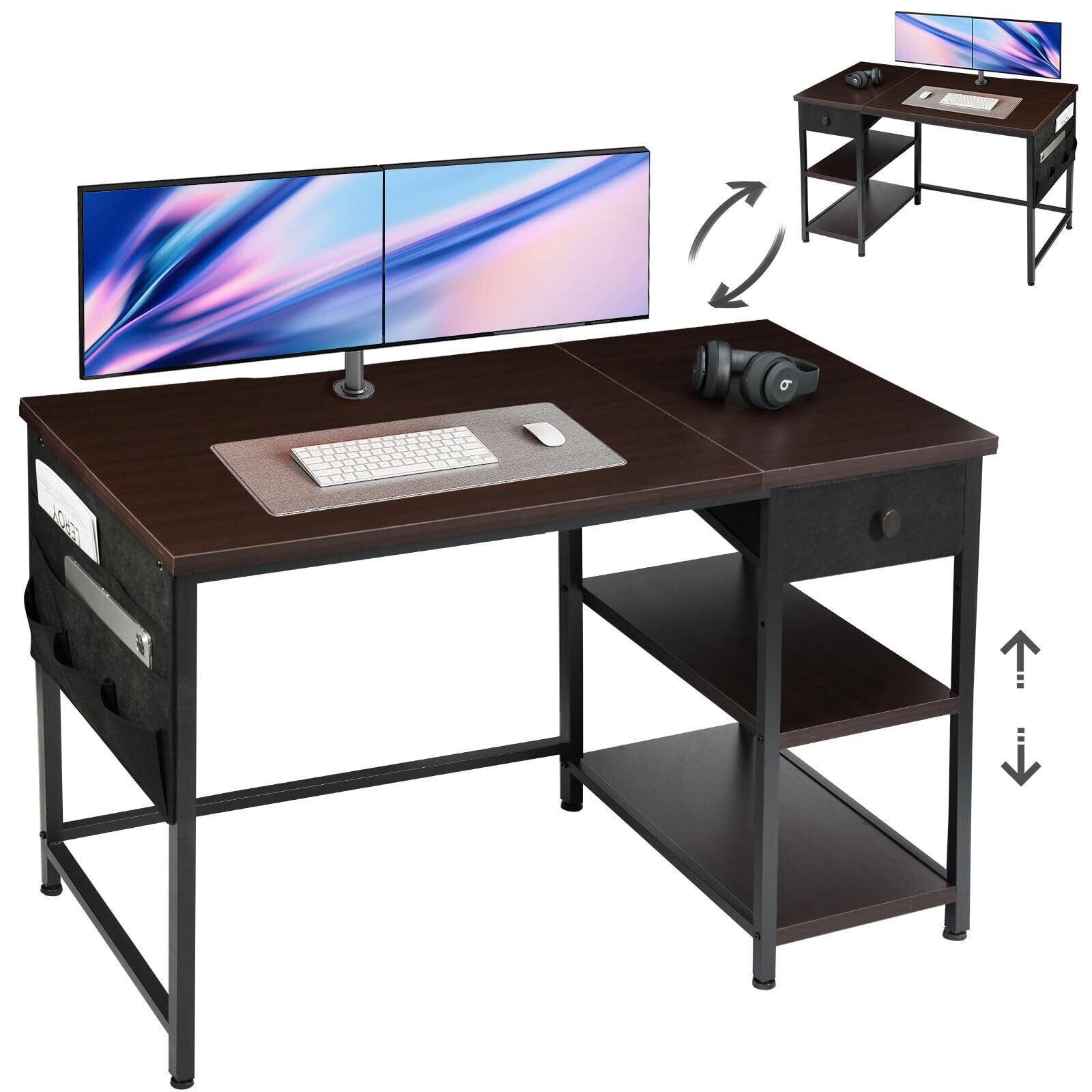 【最強な収納機能】サイドラック、サイド袋、引き出しなどが装備していますので、本、辞書、CDなどの収納はとても便利です。収納一体型で空間利用率UP!仕事用のpcデスクだけでなく、子どもの勉強机としても最適です。