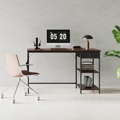 【特価セール】YeTom 机 pcデスク 勉強机 学習机 幅120cm 作業机 左右入替可 ワークデスク パソコンデスク引き出し付き 事務机 つくえ 本棚付き ダークブラウン