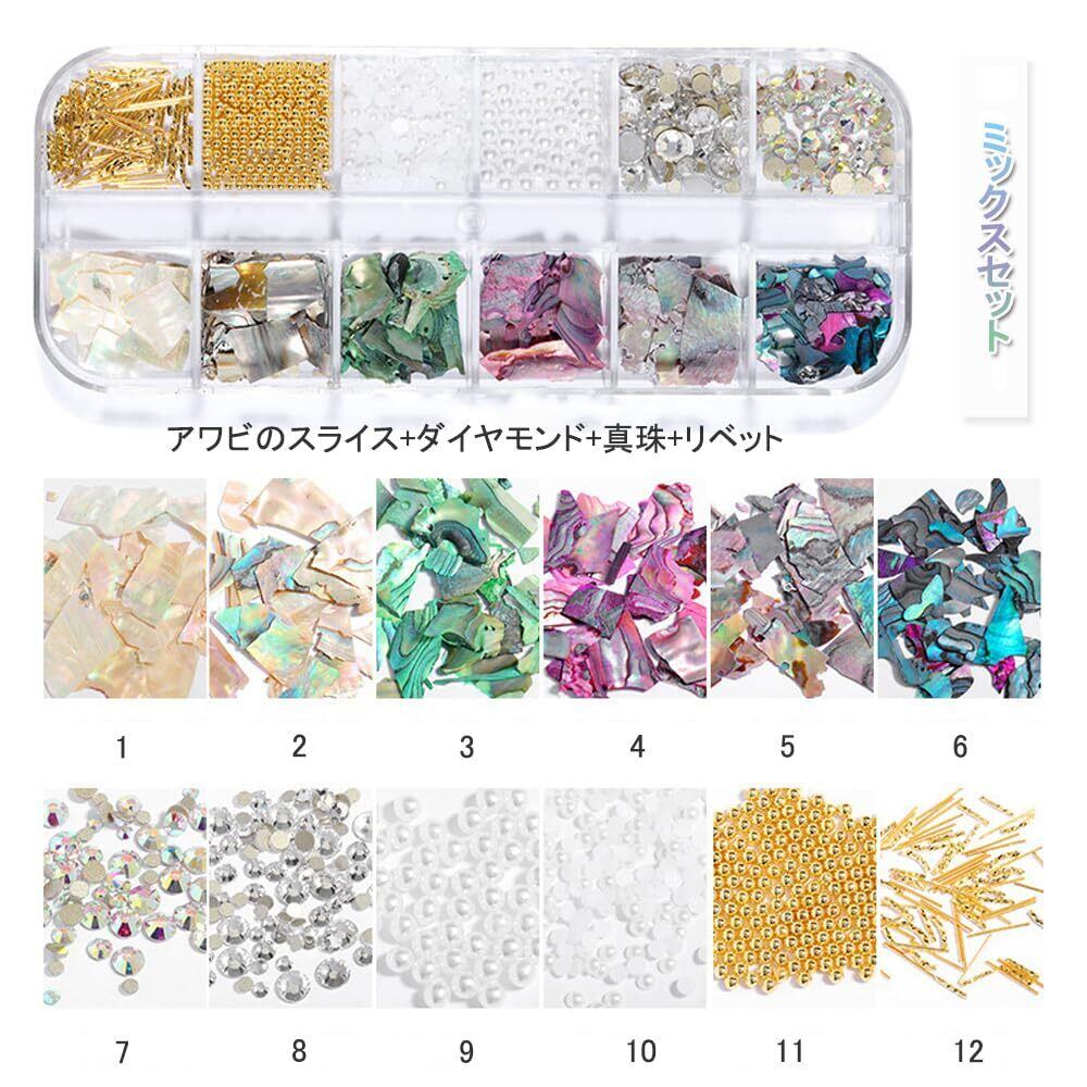 【在庫処分】DFsucces ネイルパーツ 36種 天然貝シェル シェルストーン ストーン ネイル石パーツネイル レジン ジェルネイル 貝殻石 貝殻片 ダイヤモンド パール ネイル用品 収納ケース付き(3ボックス) | allureshop