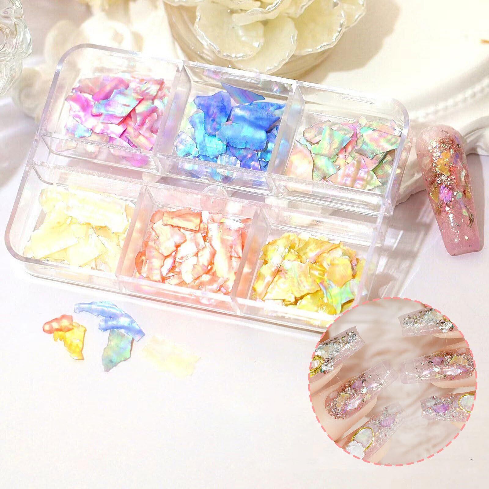シェル ネイルパーツ 2ケース 12色セット 天然 貝殻 シェル フレークシェル 薄型 ジェルネイル レジン用 DIY ジュエリーパーツ ネイルアート ハンドメイド デコパーツ (2ケース)