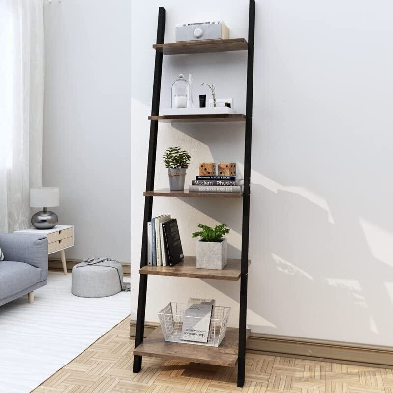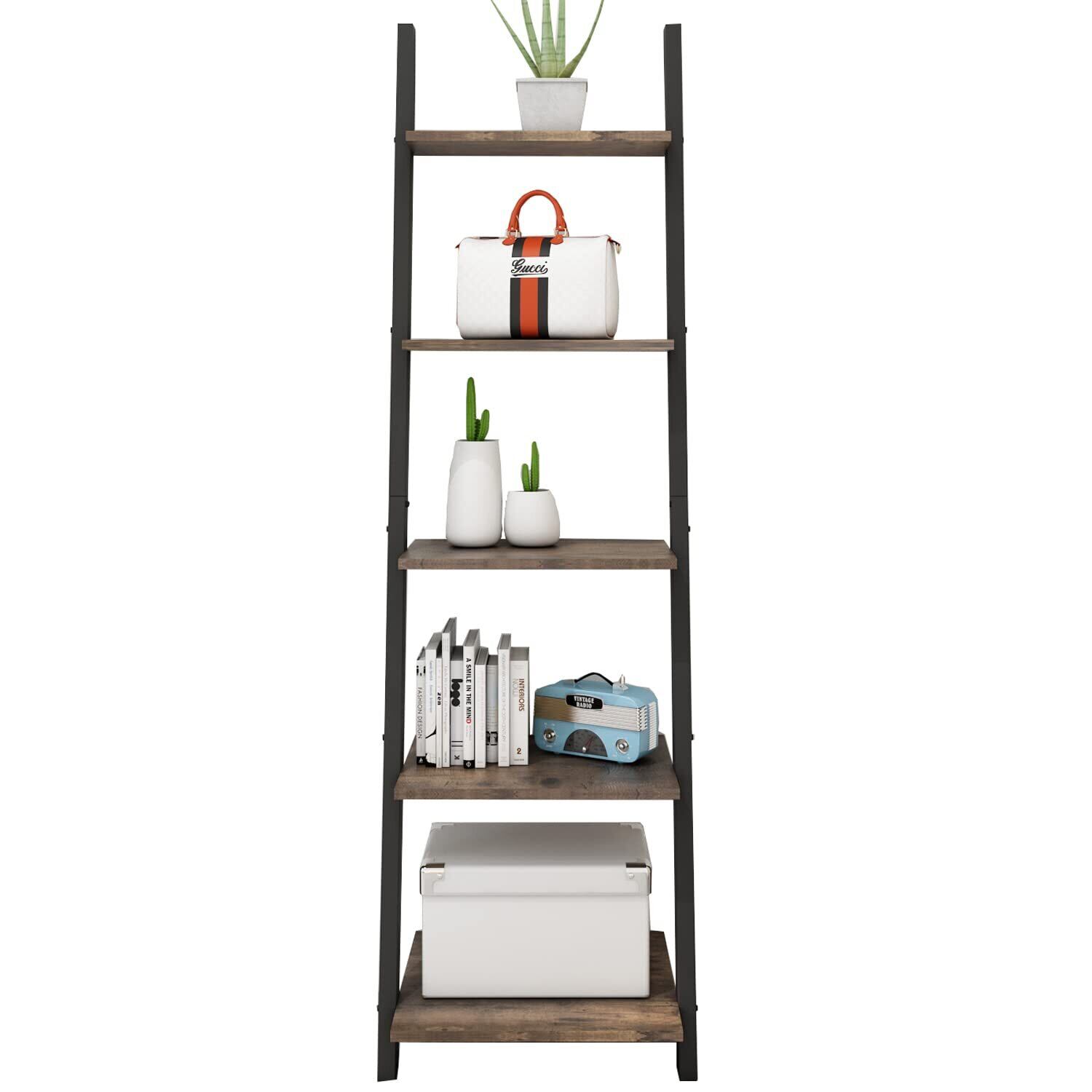 O&K オープンシェルフ 飾り棚 棚ラック木製 5段ラック おしゃれ 本棚スリム 壁面収納 北欧スタイル ブラウン 収納棚 玄関 リビングルーム 木目幅45×奥行35×高さ154.3cm(ブラック)