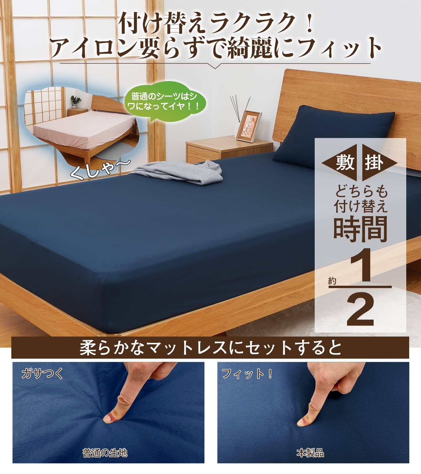 【のびのびボックスシーツ仕様】ベッドシーツはセミシングル(80x200cm)~シングル(100x200cm)のマットレスと敷き布団に適用です。厚さ3~26cmのマットレスにピッタリとフィットします。【ボックスシーツ材質】:ポリエステル 90% ポリウレタン10%。