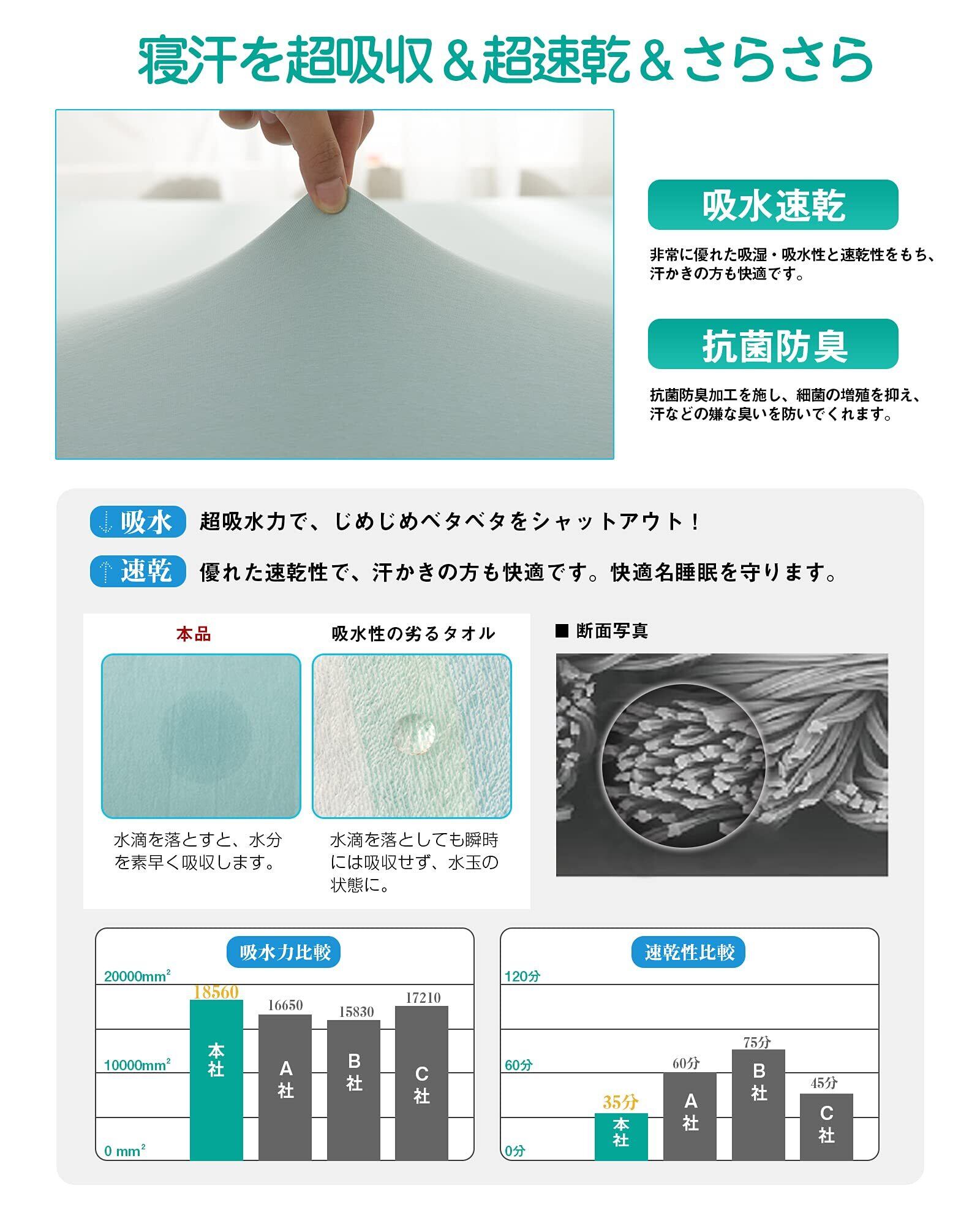 【超吸水速乾】:優れた吸湿性と通気性で、汗でもベタつかないサラサラ感を保ちます。ムレにくく、1年中快適にお休みいただけます。汚れ防止だけでなく、肌への優しさ、快眠のために機能する快眠シーツです。【ご自宅で丸洗い可能】:洗濯耐久性に自信あり!ご自宅の洗濯機で丸洗い可能、いつでも清潔に使えます。洗い替え用2枚以上のご購入をお勧めします。