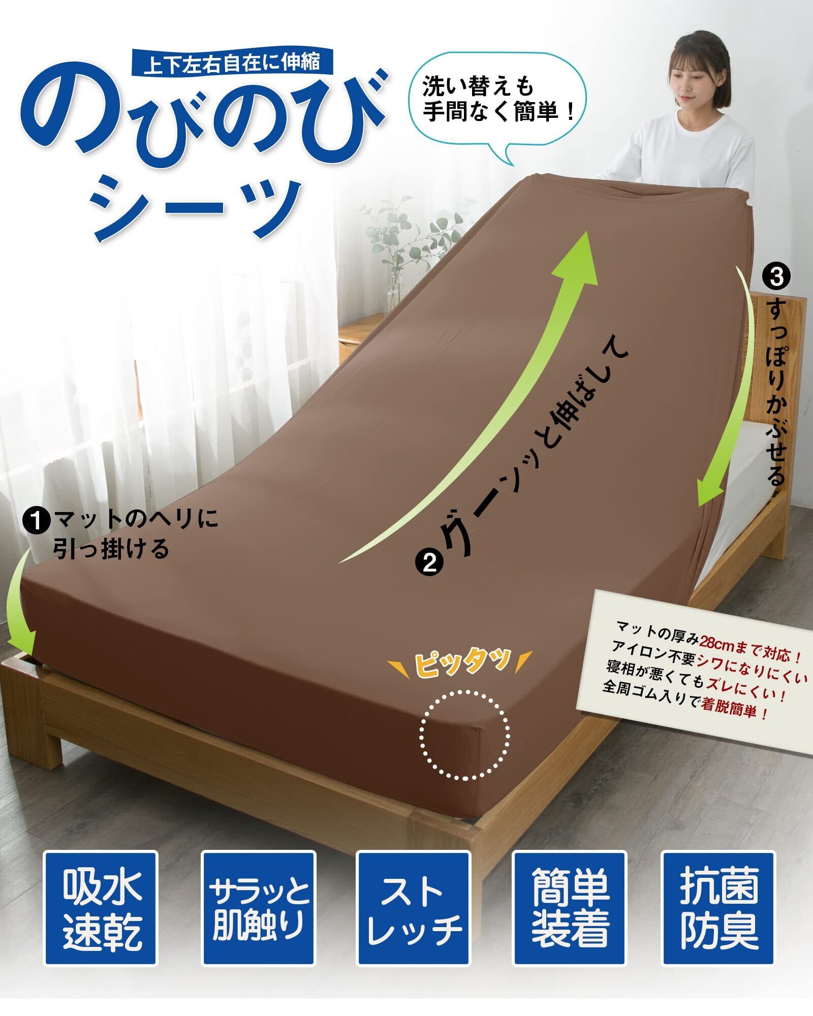 ボックスシーツ シングル やわらかニット シーツ のびのびピタッと ベッドシーツ フィットシーツ 吸水速乾 抗菌・防臭 マットレスカバー ベッドカバー オールシーズン (シングル・100X200cm ブラウン)
