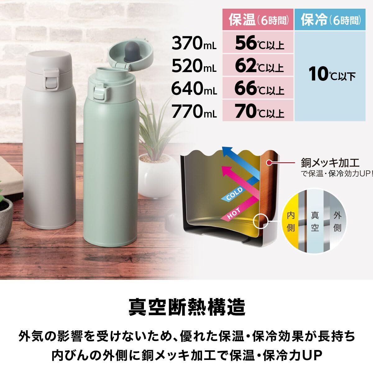 【特価商品】アトラス 水筒 520ml 保温 保冷 真空断熱 ステンレス 軽量 ワンタッチボトル マグボトル 広口 洗いやすい 片手で開けられる スイッチマグ グレー 白湯 AW-521GY | allureshop