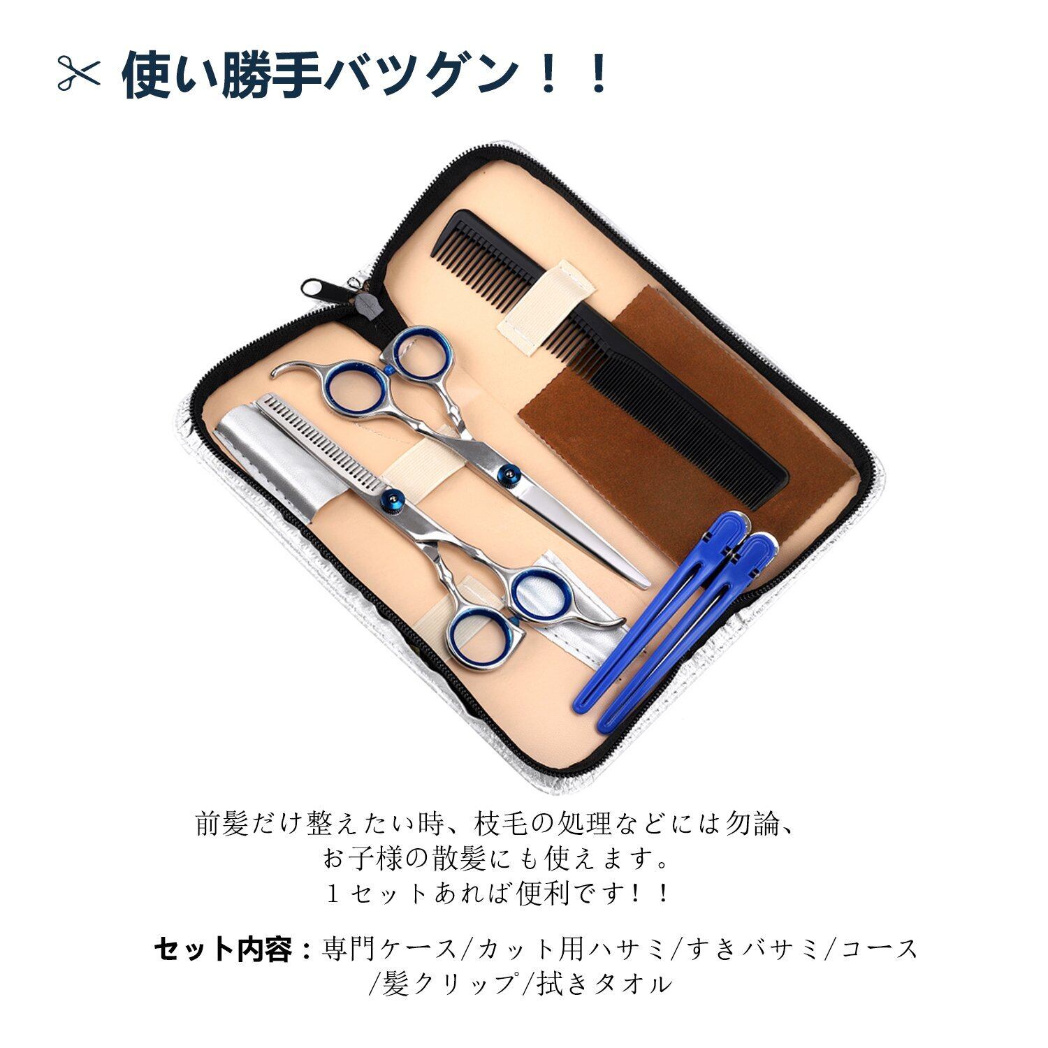 ◆ セット内容:カットバサミ*1/ スキバサミ*1/ コーム【くし】*1/ 髪クリップ*2/ 拭きタオル*1/ 専用ケース