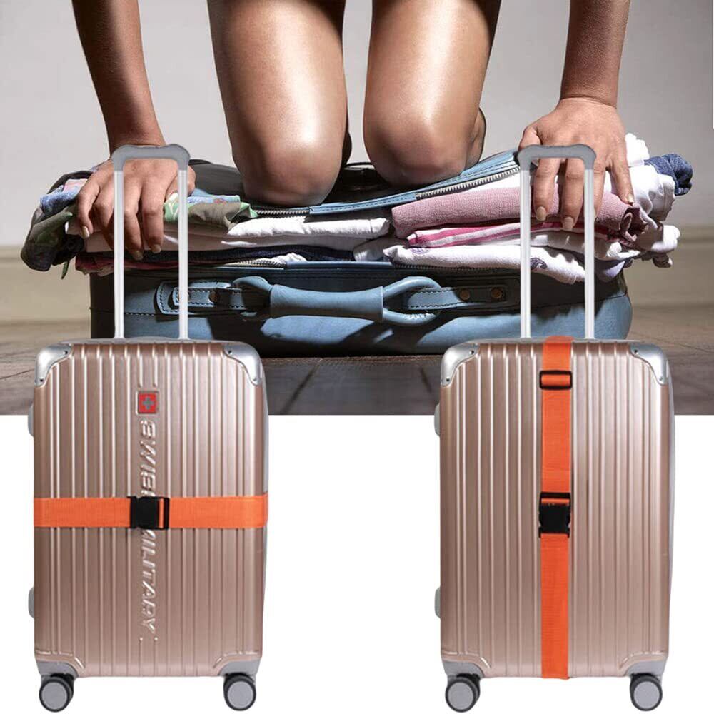 DFsucces スーツケースベルト ワンタッチ式 荷物固定 調節可能 荷崩れ防止 紛失防止 高弾性スーツケース留めベルト 旅行便利グッズ (オレンジ)
