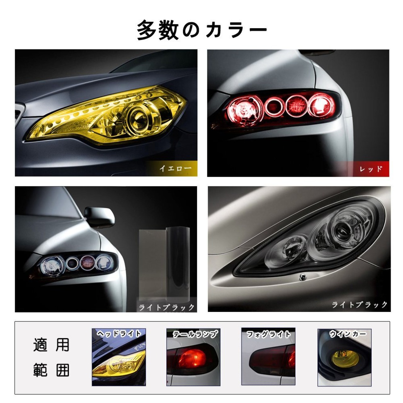 適用範囲:車&バイク | ヘッドライト、フォグランプ、テールランプ、ウインカー、等々。