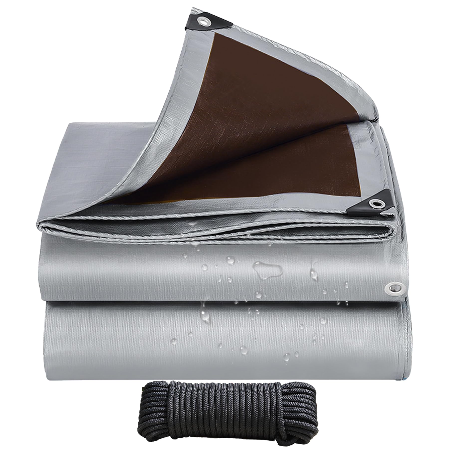 【商品仕様】防水シート シルバーシート #4000 厚手 防水 屋外 屋根 バルコニー用。防水シート実際のサイズ:約1.9m×1.9m、じゅうりょう:約0.72キログラム。商品の厚さ:約0.4mm、両面カラー:シルバーとコーヒーカラー。複数のサイズ、寒さ熱さに耐久があり、耐久性,用途が広い。直径5 mm、長さ約10 mの黒いひもを贈ります