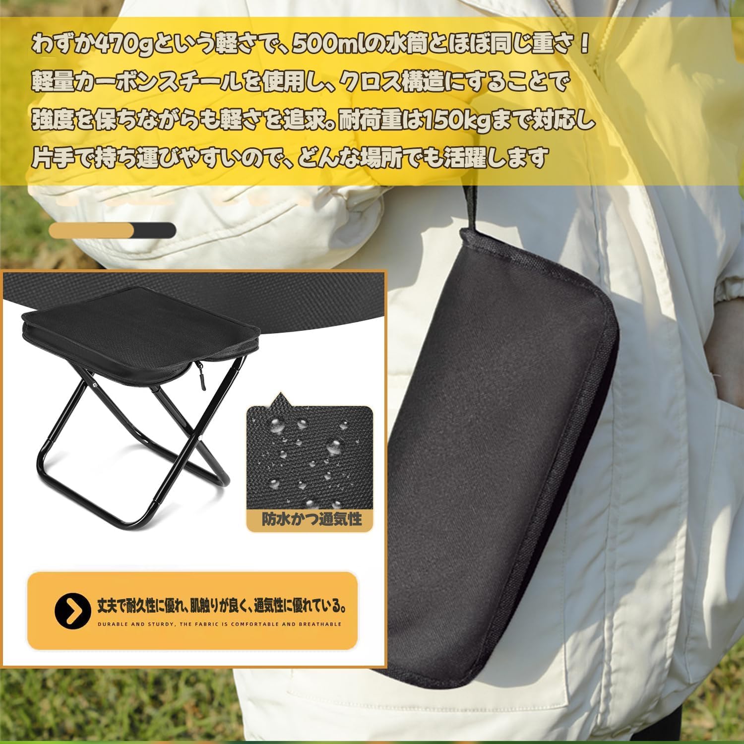 【便利な軽量タイプ】僅か460gの重さは水筒より軽いです。フレーム部分は6013アルミ素材でできており、軽いながら耐荷重は85kgに達しています。持ち手も付きますので、持ち運びに楽々、コンパクトで折りたたみ傘のように使えて便利です。