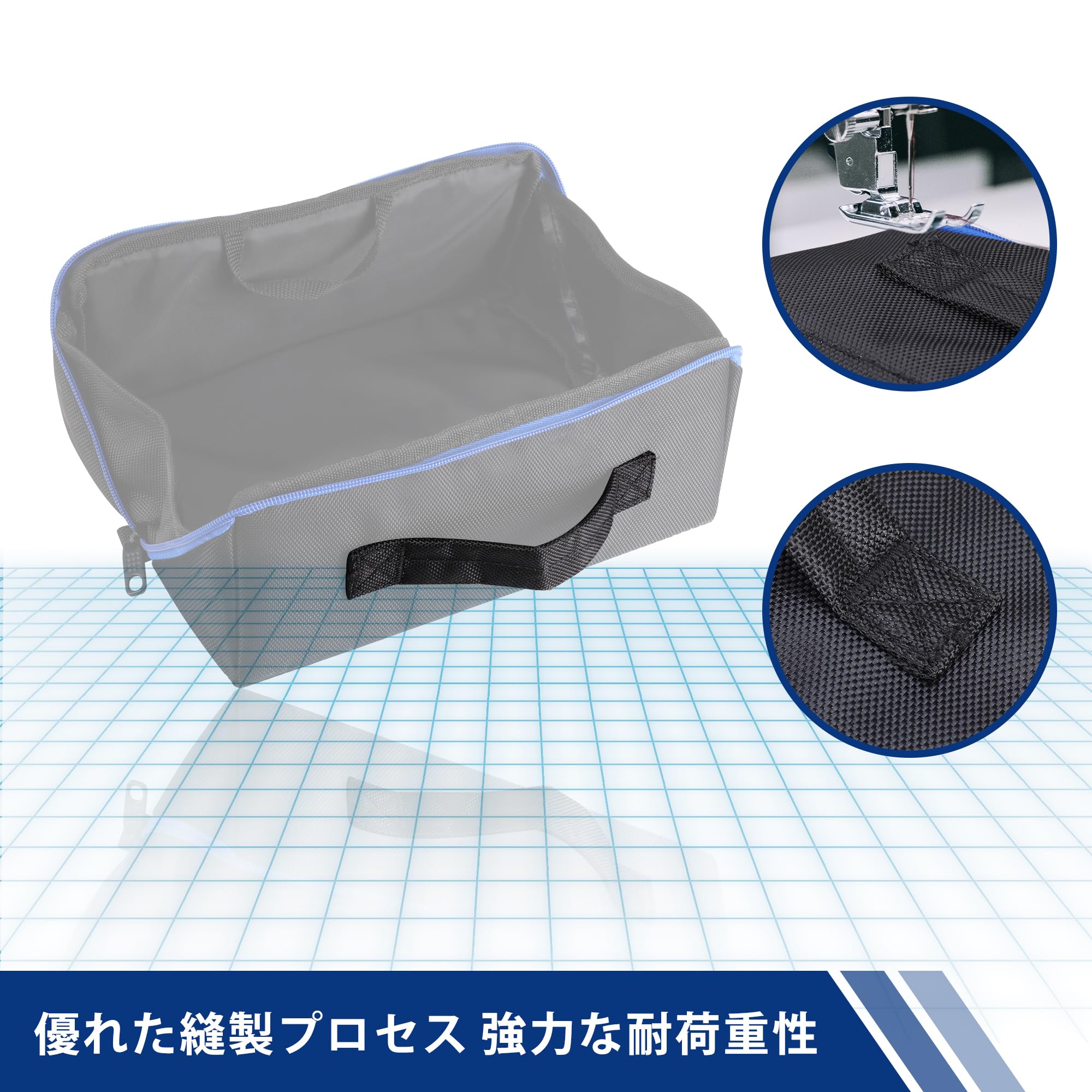 【こだわり】ダブルジッパーでしっかりとしてバッグを締められ、持ち手が付いているため、持ち運びが便利になります。