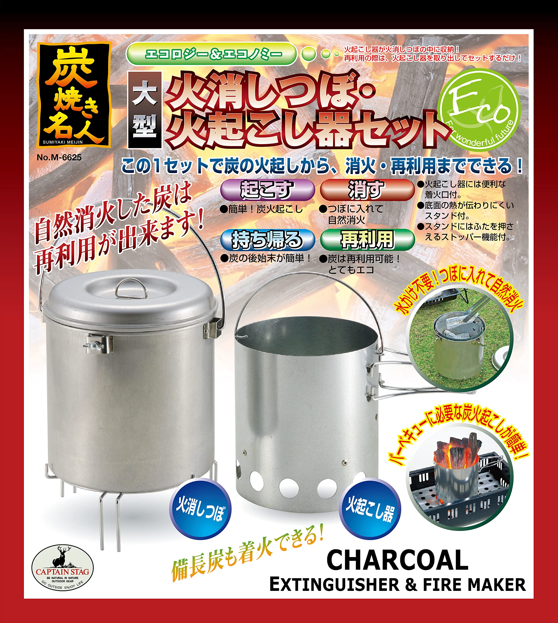 キャプテンスタッグ(CAPTAIN STAG) 火起こし 火消し 大型 火消し壺 火起こし器 セット 日本製 M-6625/UY-7024