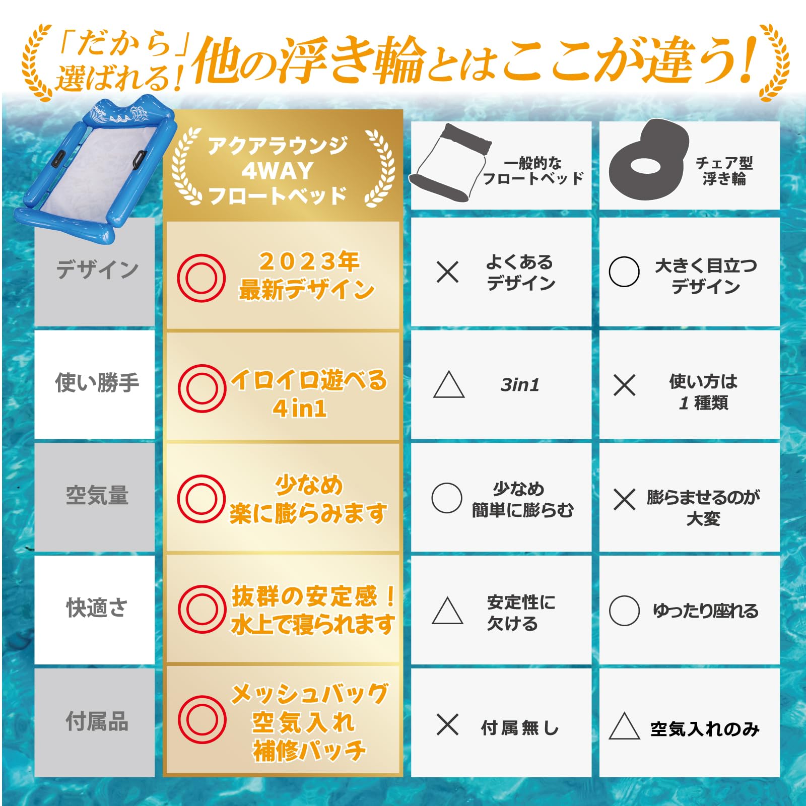 【安定感抜群!】サイドバーにより浮力UP!取っ手がついているので、水の上でも安定感安心感UP!ヘッド部分の波型設計で、首元の安定感UP!水の上でぷかぷかと長時間浮かんでいてもリラックスができるような安定感安心感抜群の仕様となっています