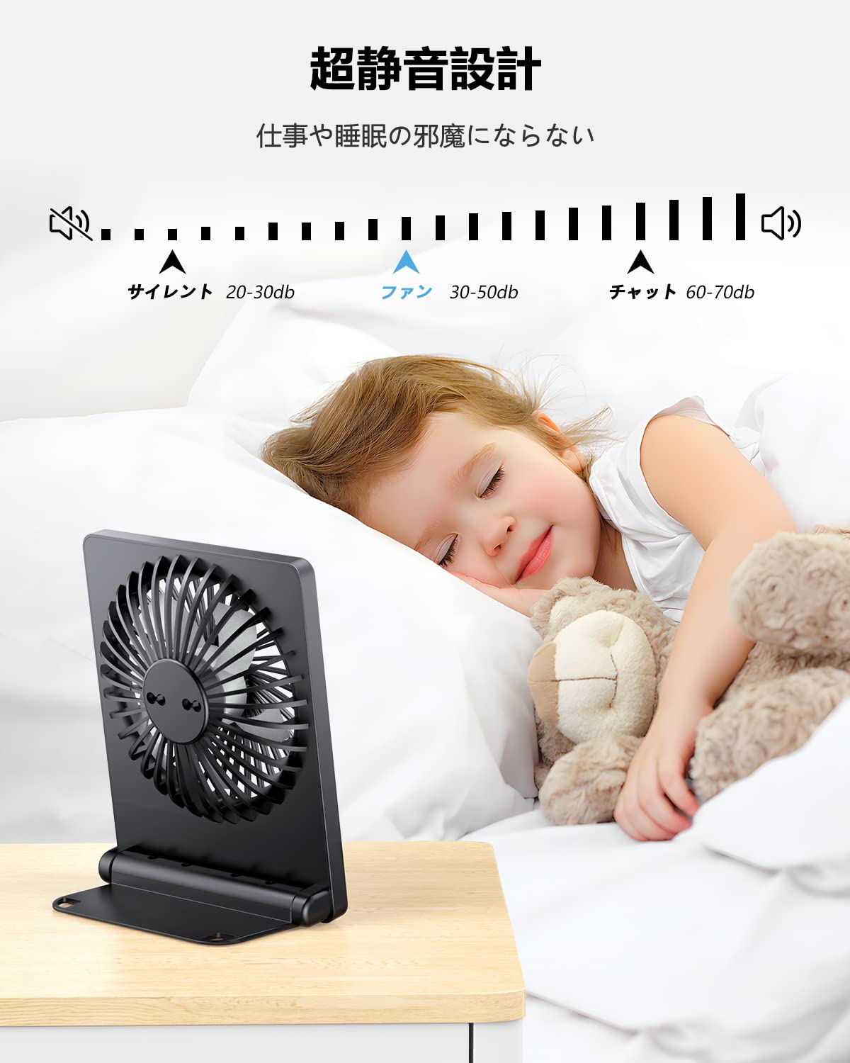 【人気商品】飛鳥の光 卓上扇風機 小型 usb 充電式扇風機 ミニ扇風機 卓上ファン 超強風 静音 超薄五枚羽根 デスクファン 折りたたみ式 風量三段階調節 180度角度調整 4 cm厚 長時間連続使用 パワフル送風 日本語取扱説明書付 熱中症対策 ブラック | allureshop