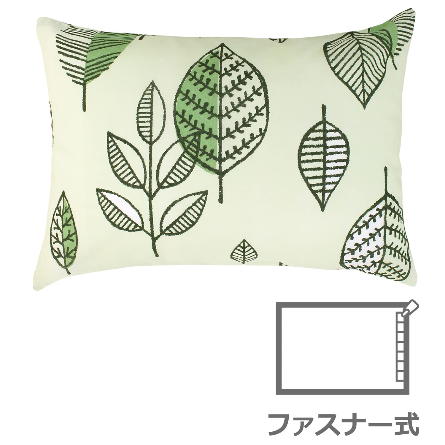 メリーナイト(Merry Night) 枕カバー 「ナチュラルリーフ」 グリーン 約43×63cm ファスナー式 まくらが入れやすい 綿100% 心地よい肌触り オールシーズン 洗える FF16119-53