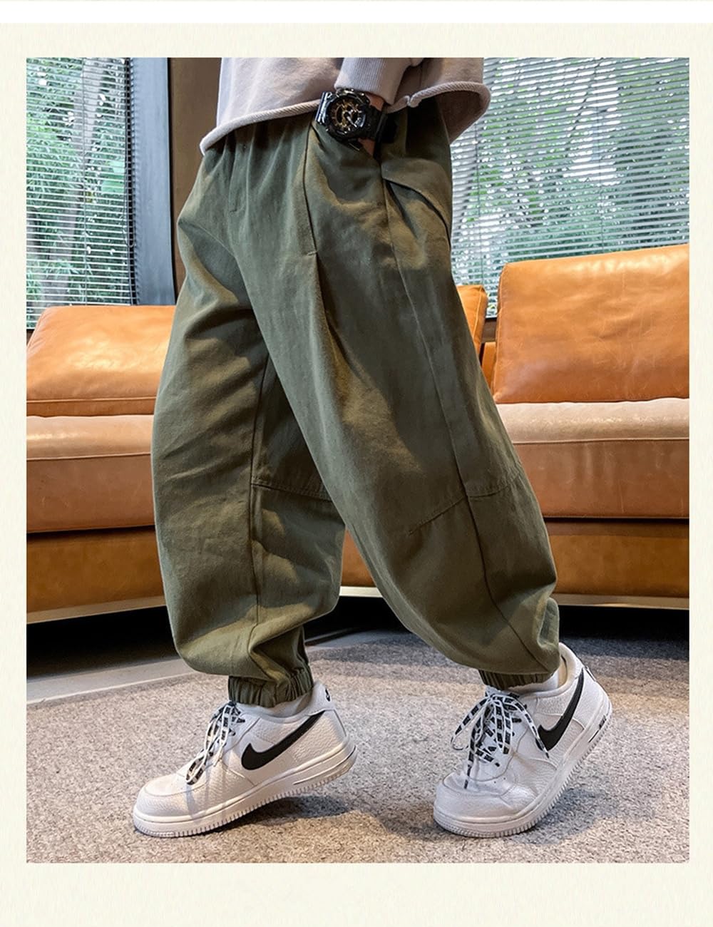 【特価セール】[KISBINI] キッズ カーゴパンツ 男の子 長ズボン ロングパンツ 綿 ジュニア カジュアル 無地 通気 柔軟 ウェストゴム 裾ゴム スポーツウェア カッコイイ 100-160