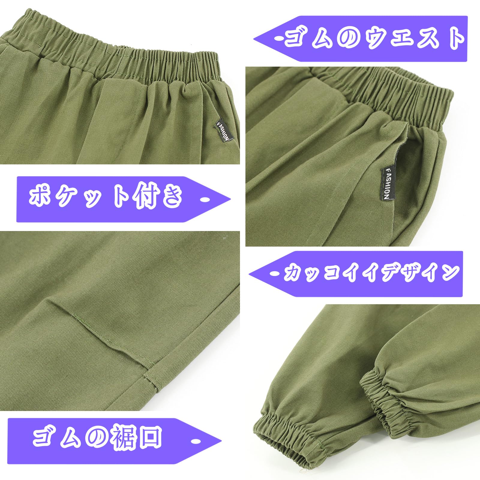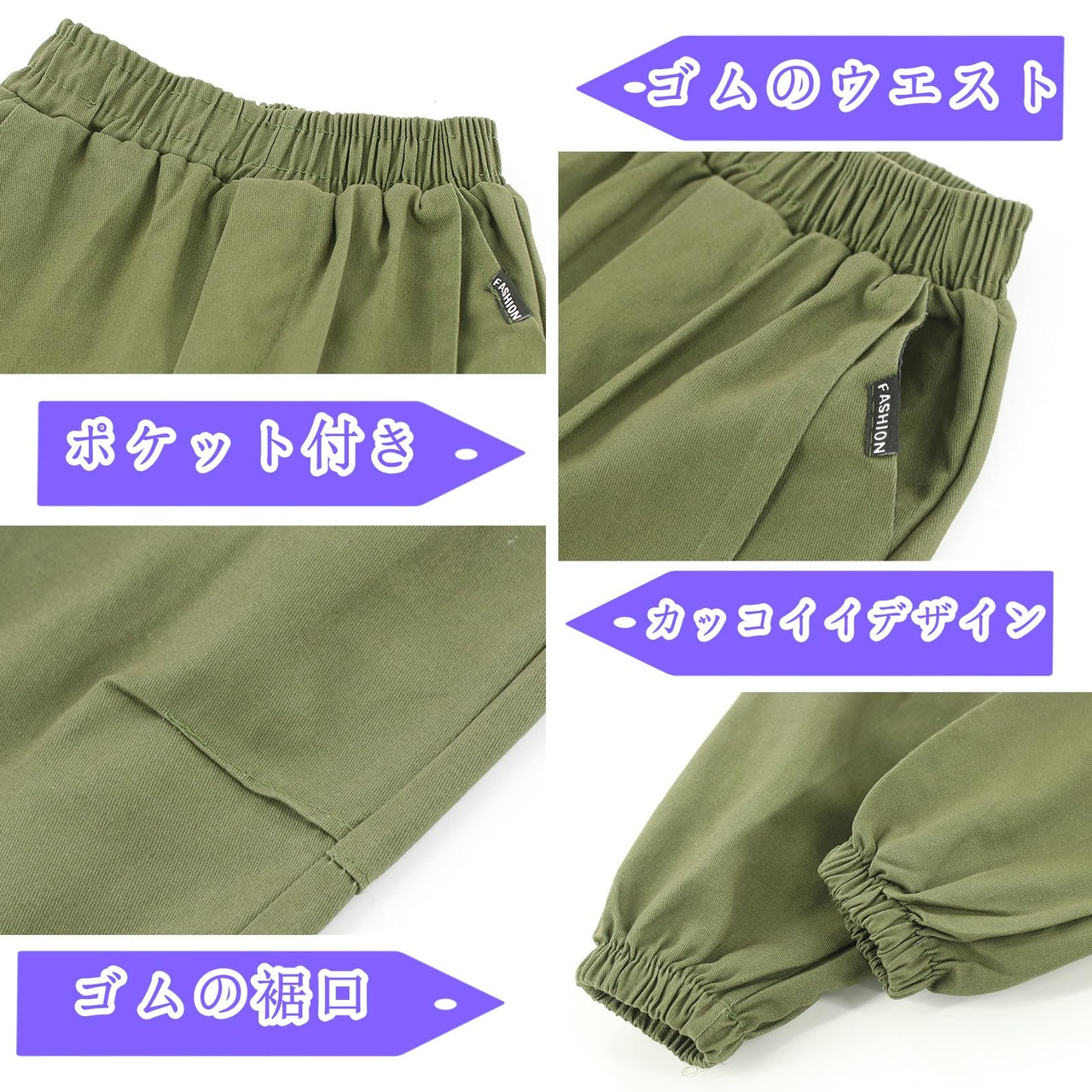 [KISBINI] キッズ カーゴパンツ 男の子 長ズボン ロングパンツ 綿 ジュニア カジュアル 無地 通気 柔軟 ウェストゴム 裾ゴム スポーツウェア カッコイイ 100-160