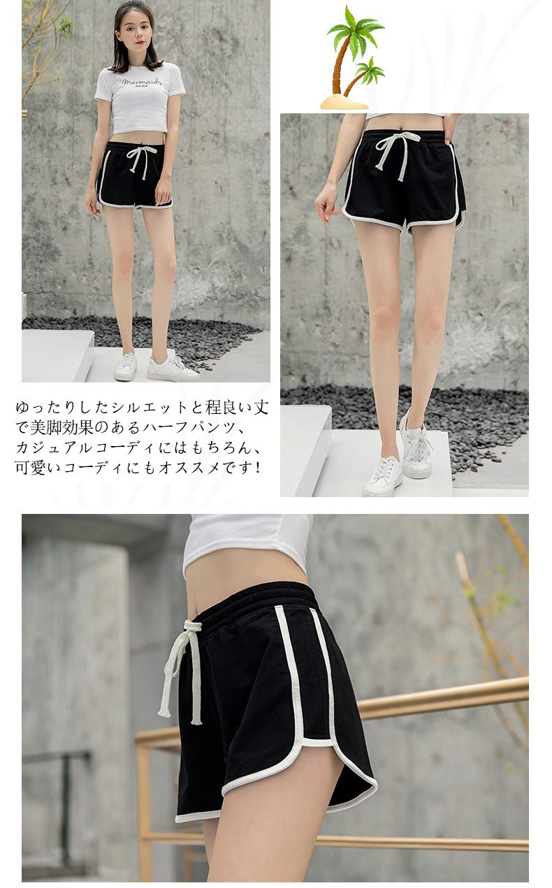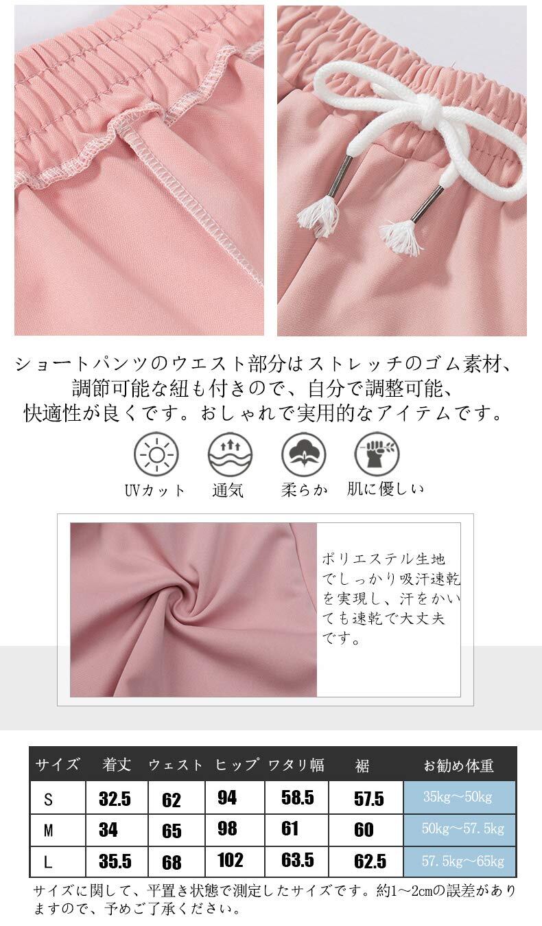 ショートパンツのウエスト部分はストレッチのゴム素材、調節可能な紐も付きので、自分で調整可能、快適性が良くです。おしゃれで実用的なアイテムです。