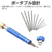 付属ドリル刃: 0.8mm/1.0mm/1.2mm/1.5mm/2.0mm/2.2mm/2.5mm/2.8mm/3.0mm 合計1箱、0.8mm/1.0mm/1.2mm それぞれ追加で2つ。
