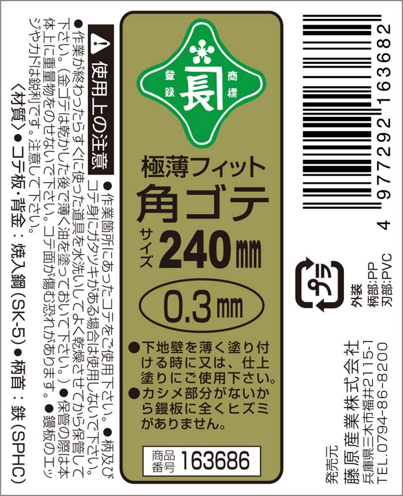 緑長 極薄 フィット 角鏝 板厚0.3mm 240mm シゴキ 仕上げ 艶だし 波消し 補修 土木工事全般 珪藻土にも