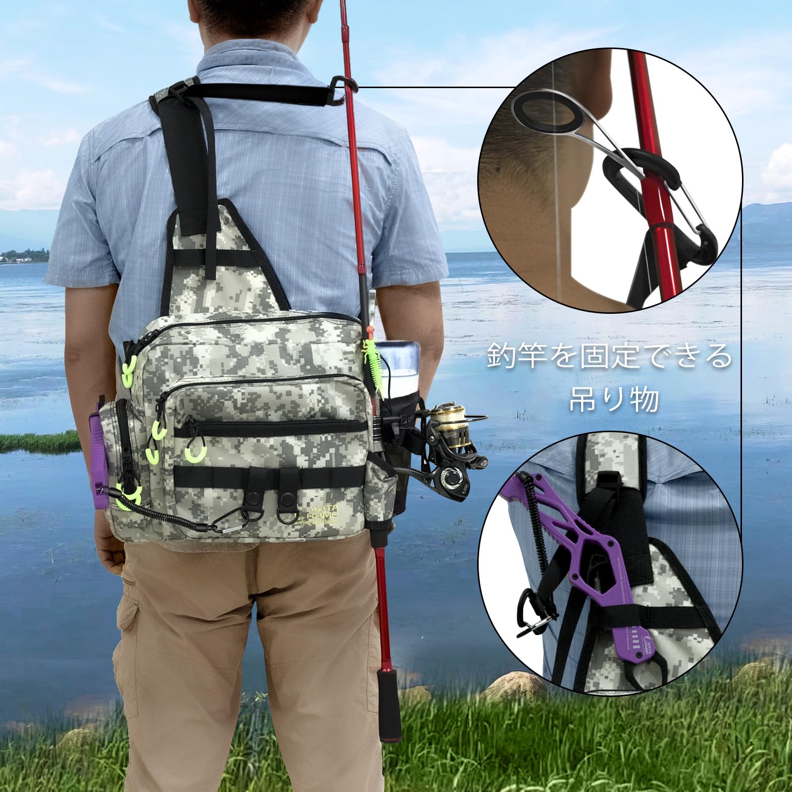 ✨7L大容量釣り ショルダーバッグ:【自重】530g 【メインポケット】幅29cm x 縦10cm x 高24cm 【中ポケット】幅25cm x 縦7cm x 高19cm【前ポケット】22cm*13cm*2cm 【サイドポケット】15cm *10cm *5 cm 【カップバッグ】17cm *10cm *6cm # カップバッグは巾着仕様で自由に調節可能【マルチポケット&大容量】収納力は結構ありルアーやエギのケース、簡単な仕掛けなど、ランガンするなら十分な収納力があります。ドリンクホルダーもペットボトルなら入ります。プライヤーやフイッシュトングなどもカラビナなどでぶら下げられます。ロッドホルダーは自分はルアーチェンジの時にロッドホルダーに刺して使って、背中にフォームを内蔵し、背負ったままでも快適な釣ります。