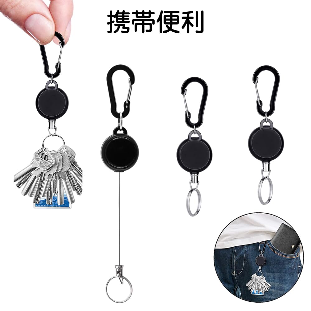 【自由に収縮】最長約60cmまで引っ張ることが可能ですので、使用時は製品を外す必要がありません、バッグ、ベルトループなどに簡単に着脱可能。