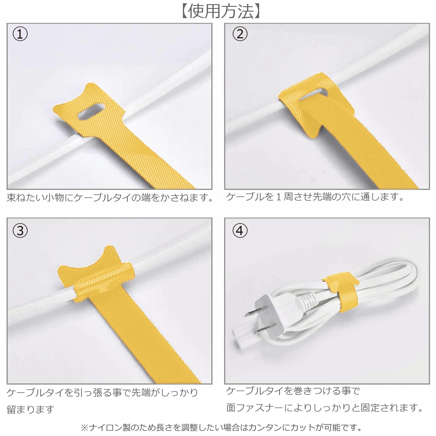 ColorfylCoco (カラフィルココ) 面ファスナー式 ケーブルタイ 長さ 15cm (150mm) × 30本セット ナイロン製 ケーブルバンド 結束バンド 配線整理 イエロー 黄色