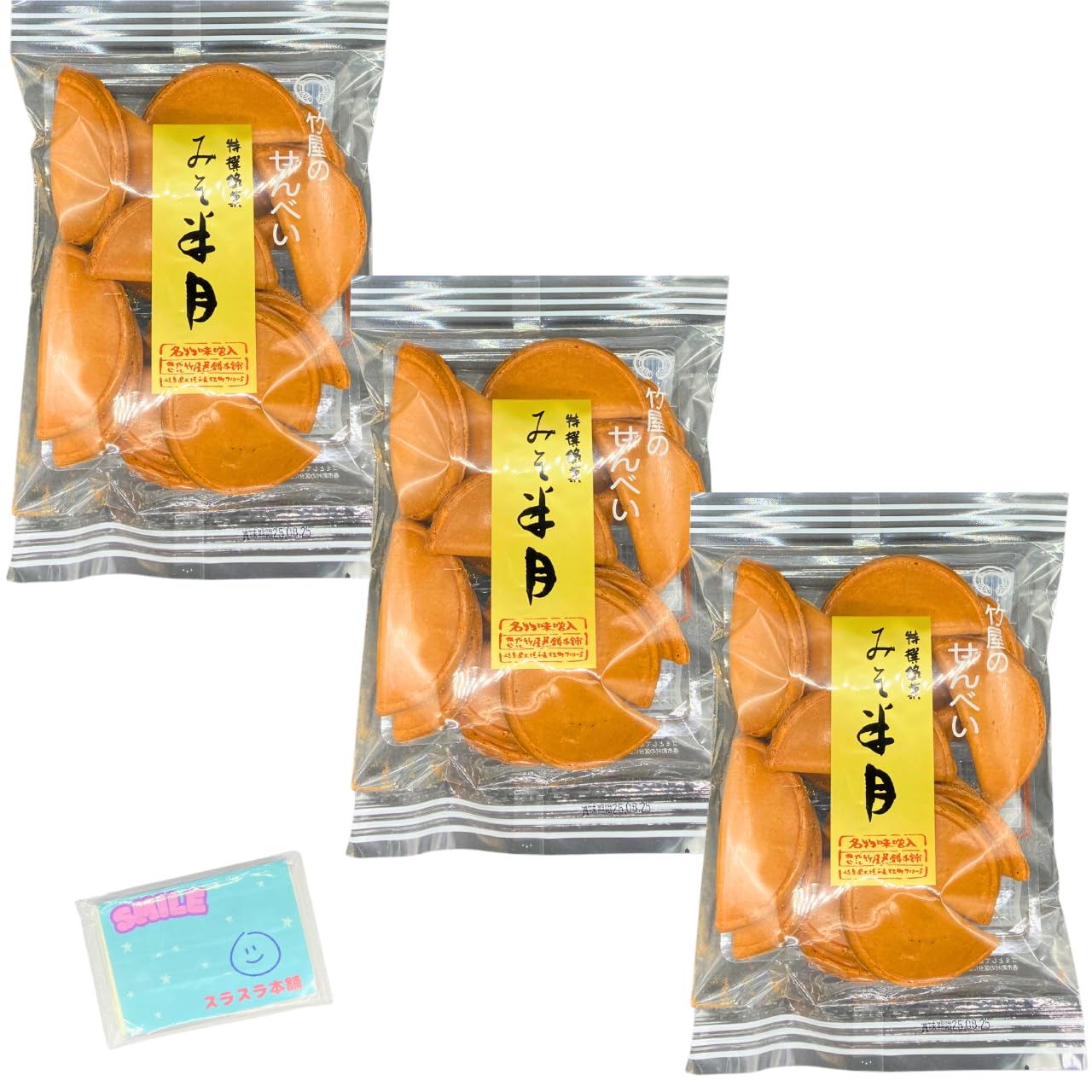 竹屋煎餅本舗 みそ半月 16枚入 ×3袋セット スラスラ本舗オリジナルポケットティッシュ付き