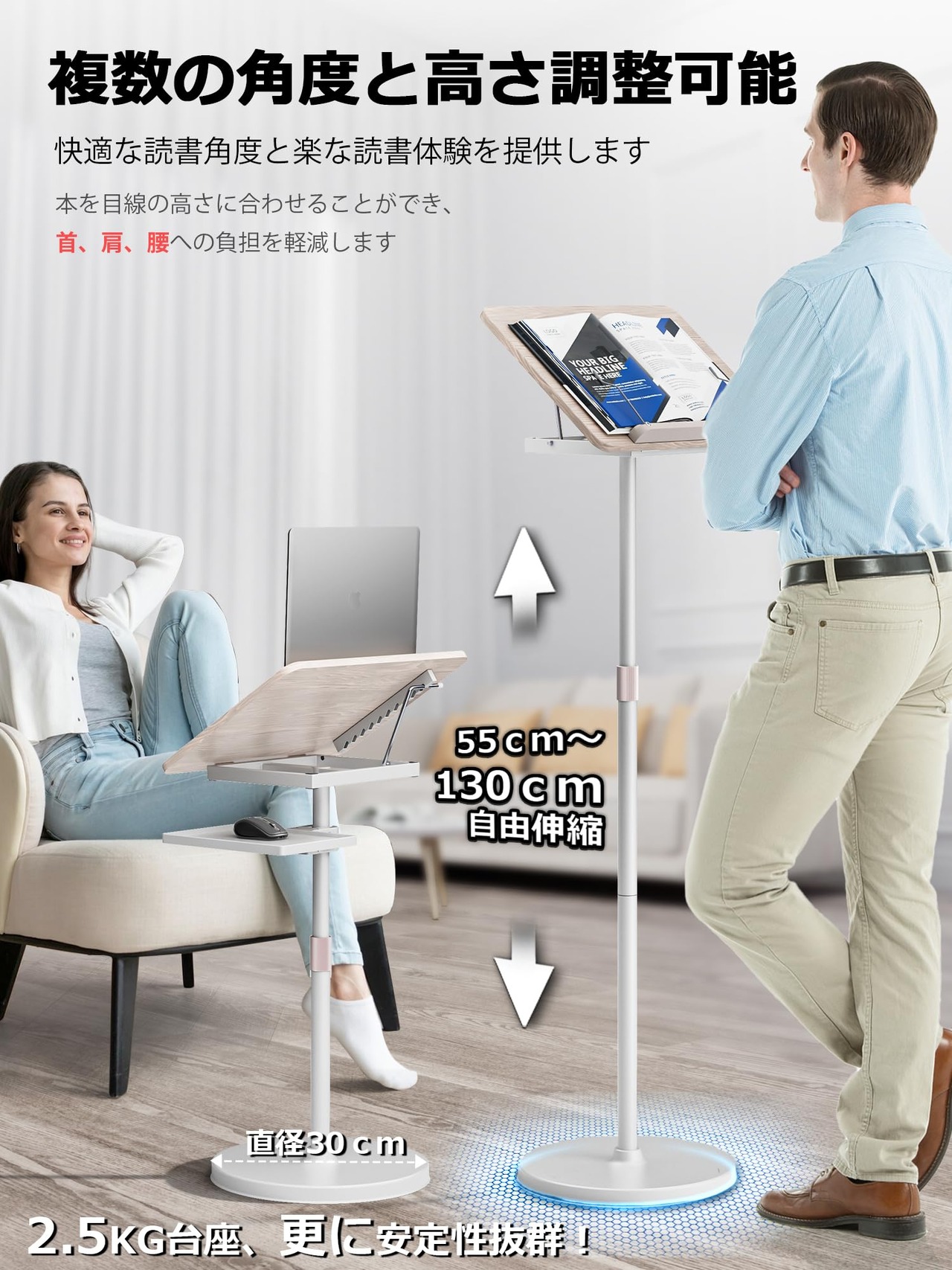 【あらゆるシーンで活躍】フロアスタイルの対応範囲はプロジェクター、PC、楽譜、料理本、教科書、聖書、演説、プレゼント、発表会、受賞などの場面で活躍可能。卓上スタイルの対応範囲はタブレット、電子ブック、スマホ、絵描き、料理、スケッチなどご利用可能、更にベッドサイドやソファーサイドのような使い方もお勧めです。勉強、教室、音楽室、キッチン、会議室、講堂など、どんな場所でも馴染みこむシンプルなデザインです。