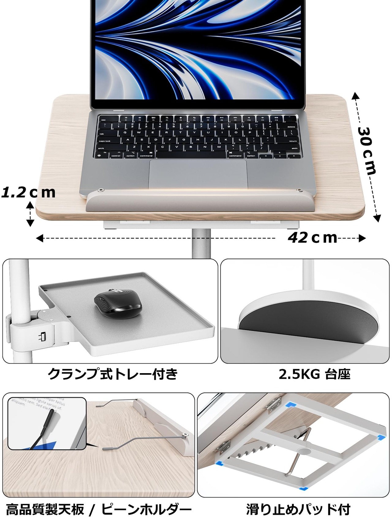 【安定性 × 耐久性の最高仕様】2.5KG重みベースと高品質炭素スチール製造支柱延長棒を厳選し、より安定性を高める。単層スチール表面は錆びないようにコーティングし、更に長持ち可能です。木天板は42×30㎝大きいサイズ、A3サイズもご利用可能!防水コーディングした表面は、汗や水こぼれなどは簡単に掃除可能です。