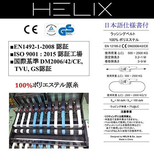 【新着商品】HELIX ラッシングベルト ラチェット式 ベルト幅 35mm ベルト長さ 6m 破断荷重1500kg エンドレス タイプ【2本セット】