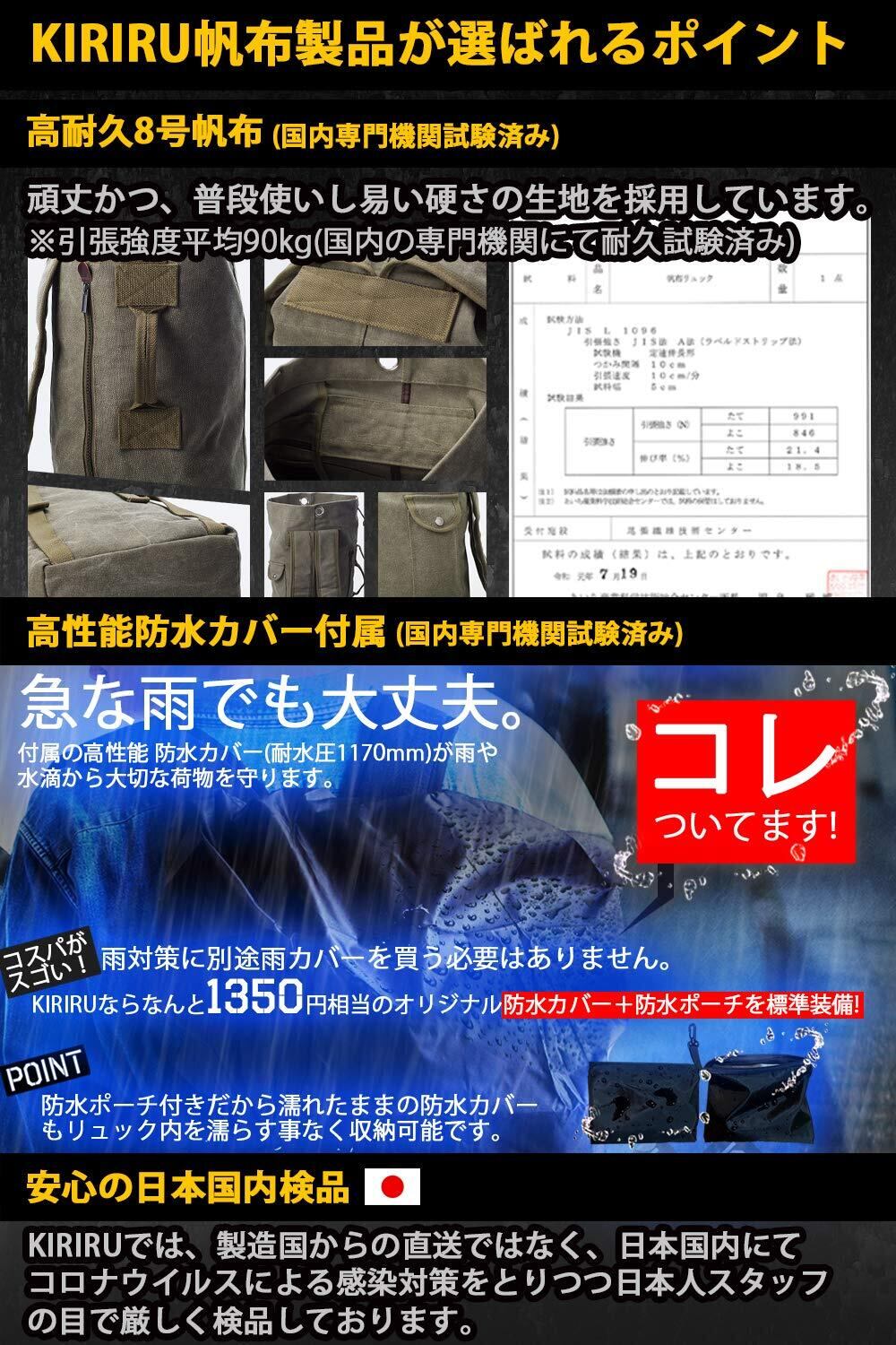 [KIRIRU] 無骨 × 帆布 メンズ リュック 大容量 〔 防水 レインカバー & 収納袋 付き 〕 20L 30L 堅牢 コットン キャンバス バックパック サイドファスナー ポケット付きモデル
