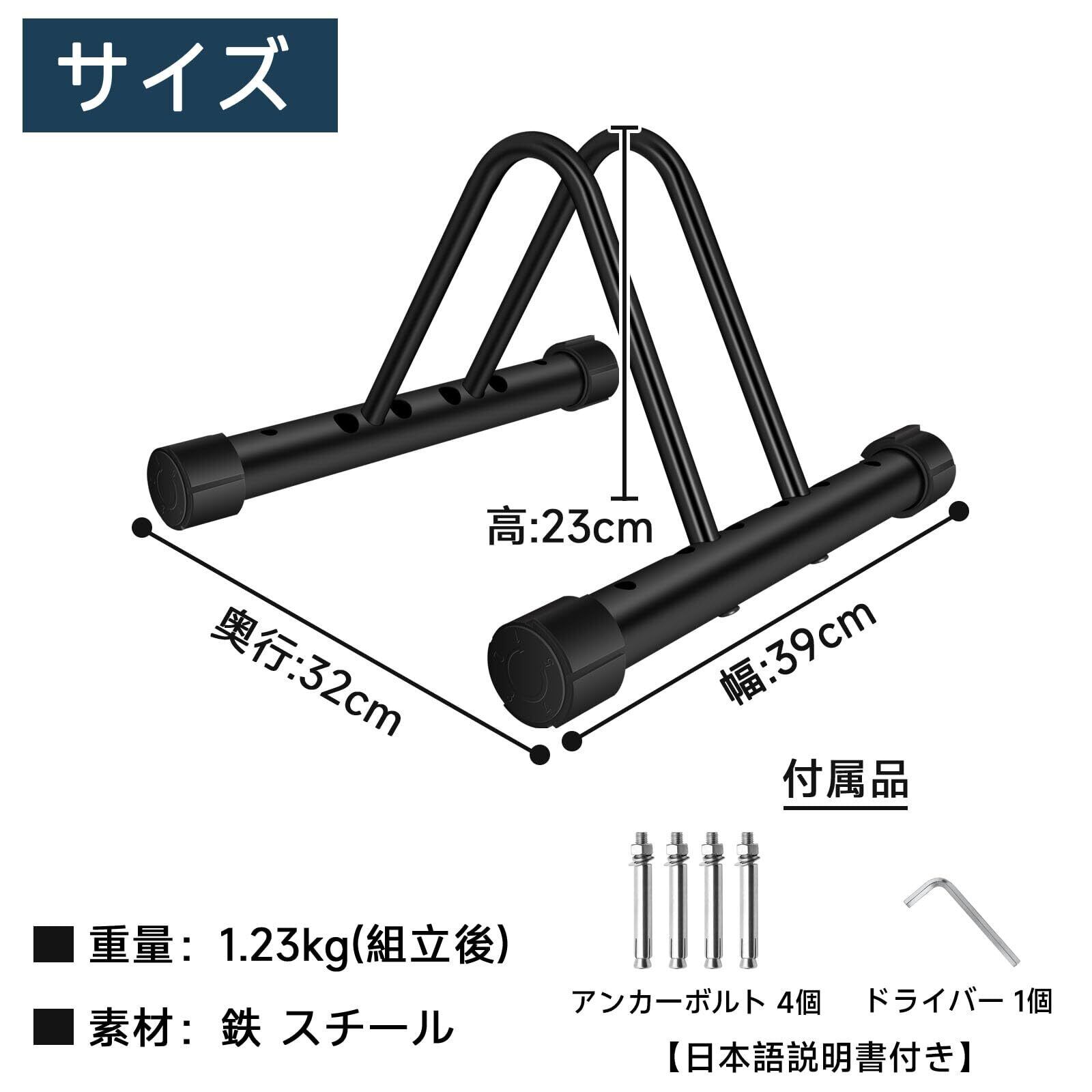梱包内容:自転車スタンド本体*1、アンカーボルト*4枚、ドライバー*1枚、日本語取扱説明書*1枚となります