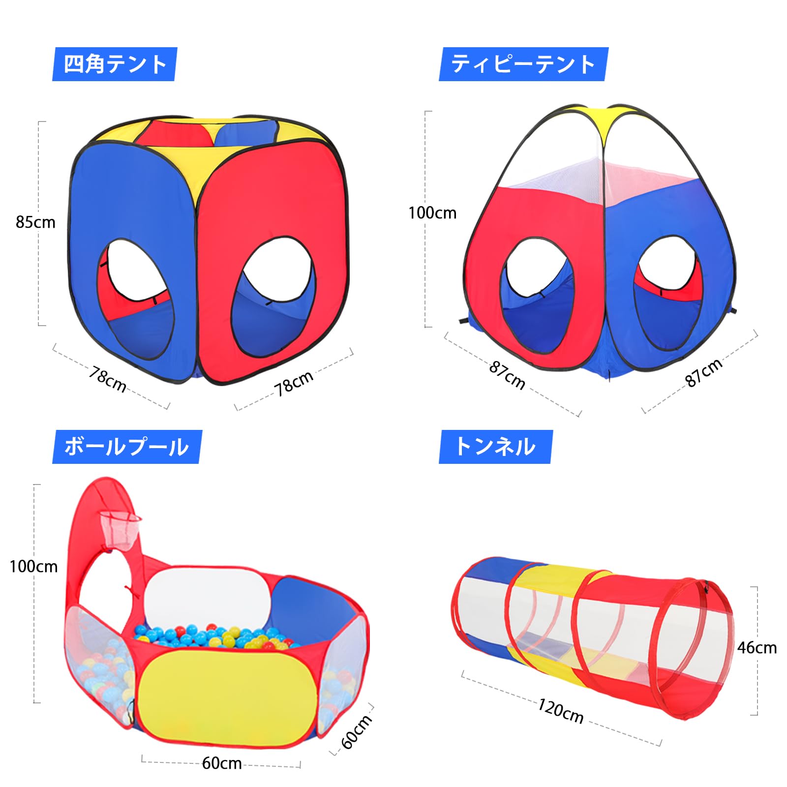 【完璧な子供プレゼント】本製品はボールハウス テント、四角いテント、トンネルと六角形ボールプールの五つの部分に構成されています。各テントを組み合わせて使えますが、別々に使用してもOKで、いろいろな使い方があります。友達と遊びに行きましょう!お祝いやプレゼントとして他人に贈るのに適しています。ペットも子供と一緒に遊ぶことができます。