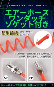 こちらのスパイラルホースとダスターガンのセットは、自宅・職場・オフィス・学校・工場・倉庫など色々なシーンでお使いいただけます。日曜大工や自宅洗車の水飛ばしや・ホコリ塵などの飛ばしなどエアーホース延長用などにお使いいただける便利大工グッズセットです。